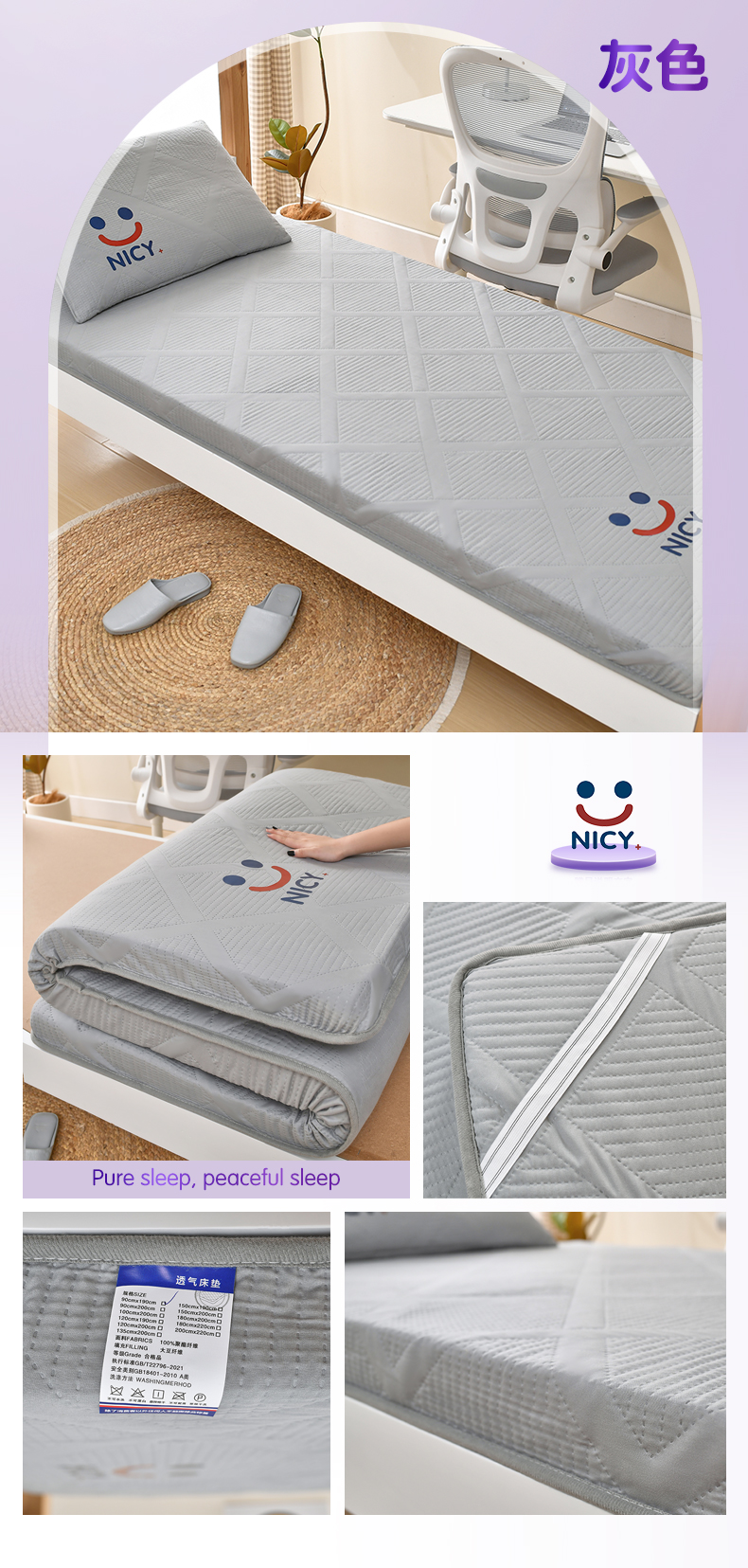 当前位置: 91家纺网 > 商品网购 > 床垫/床褥 > 普通床垫 > 寝美资家居 2024新款水洗棉学生床垫 笑脸-灰色