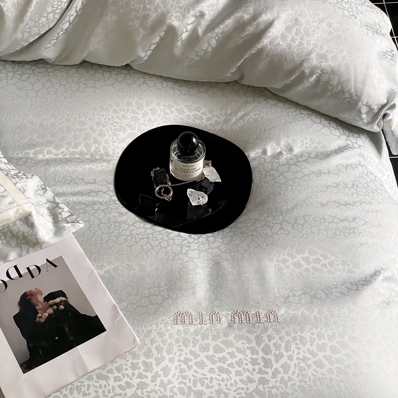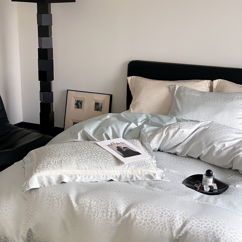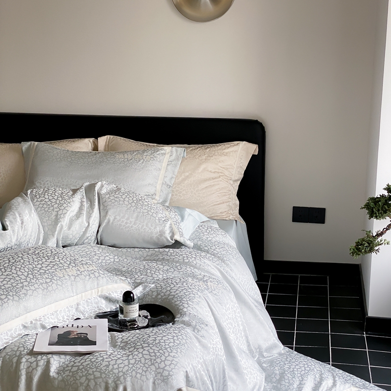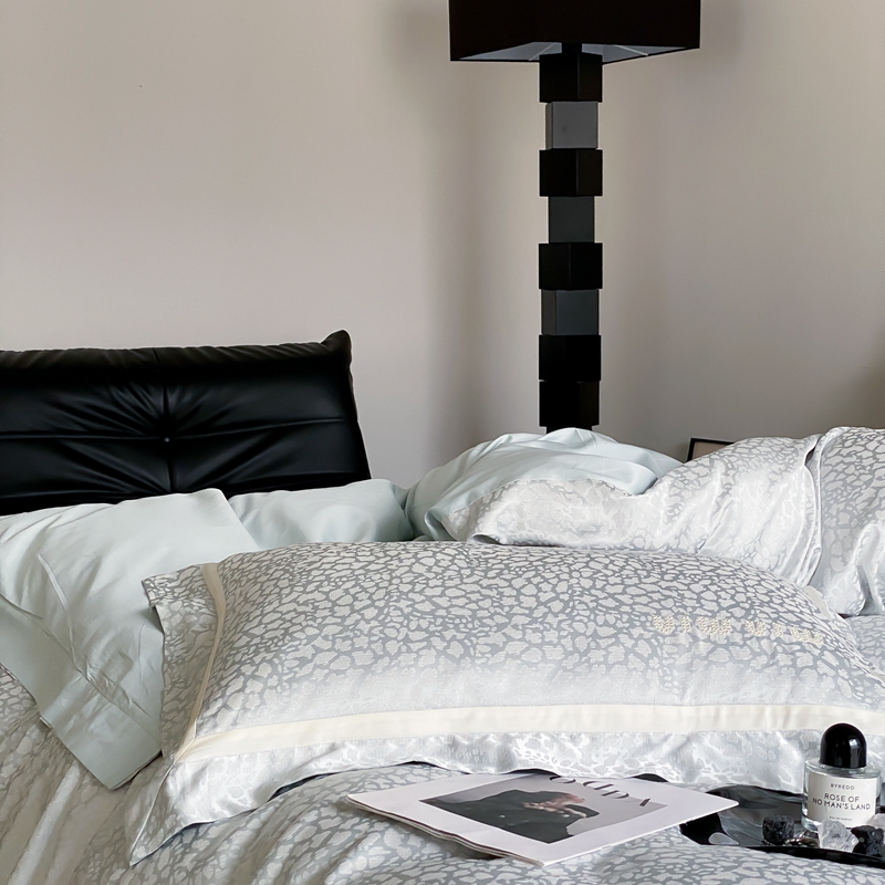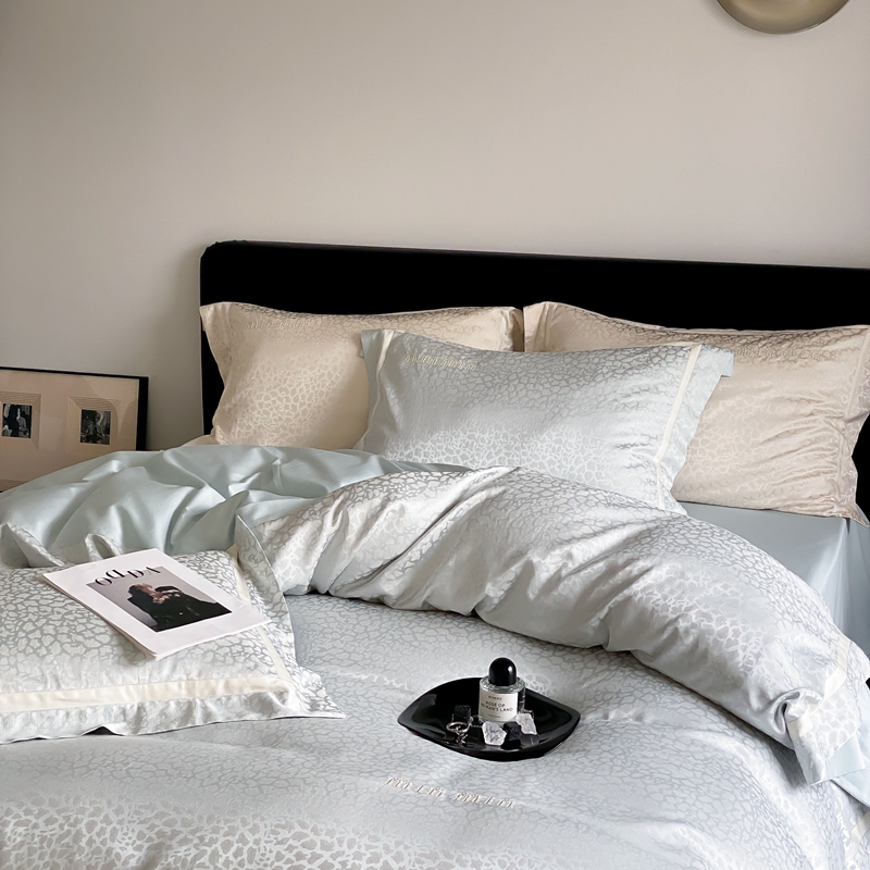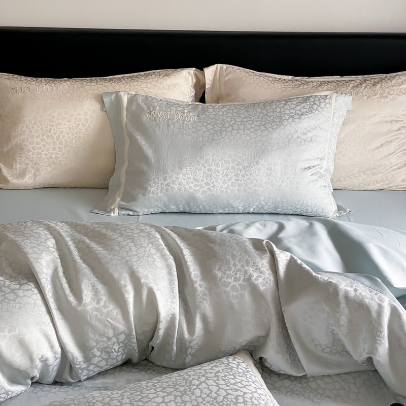 MIU缪家居 2024新款100支全棉高精密金银线色织提花四件套-慵懒之豹 慵懒之豹-冰蓝色