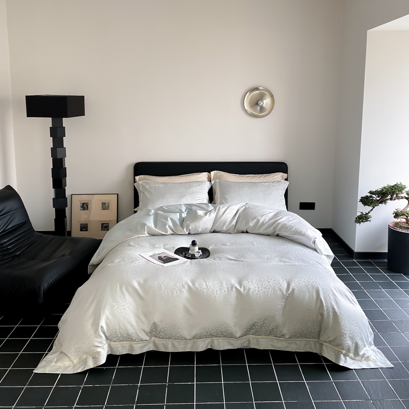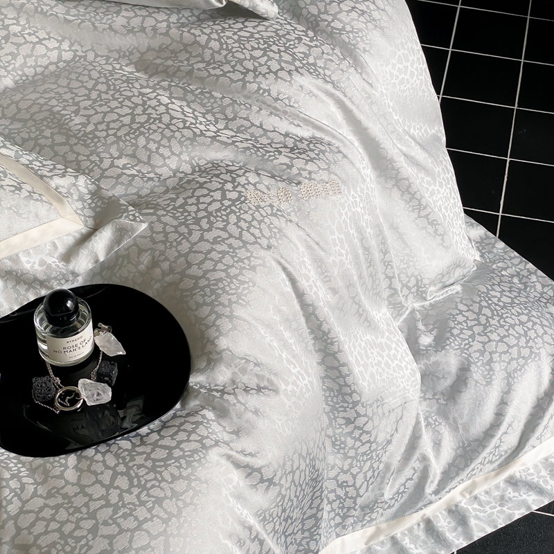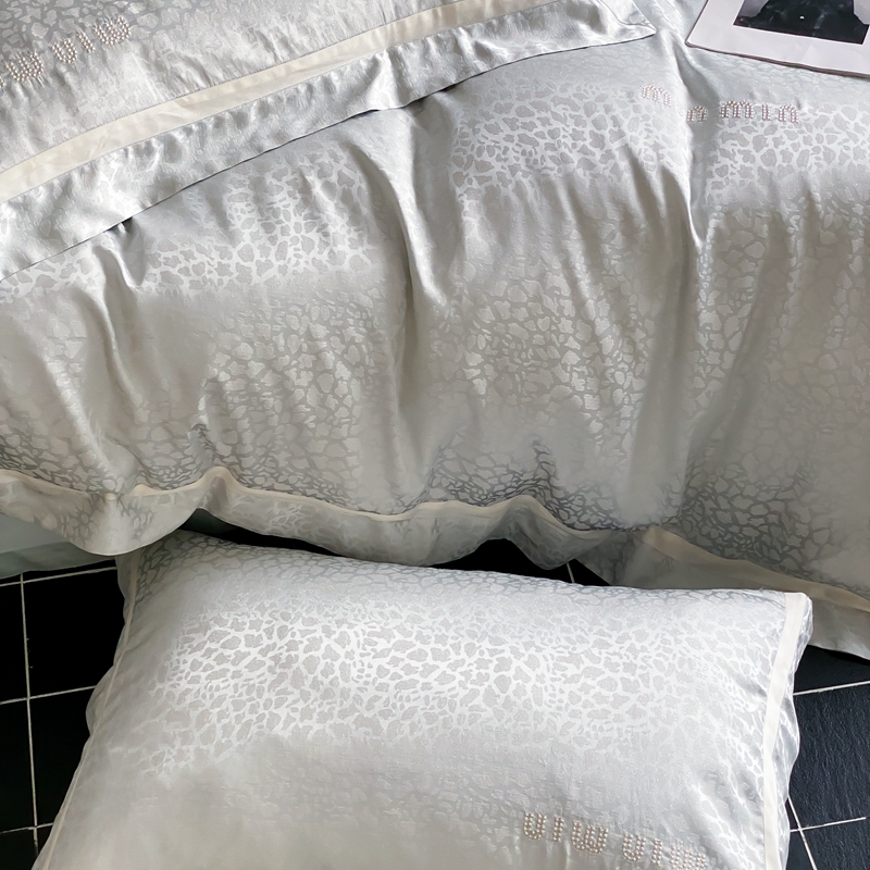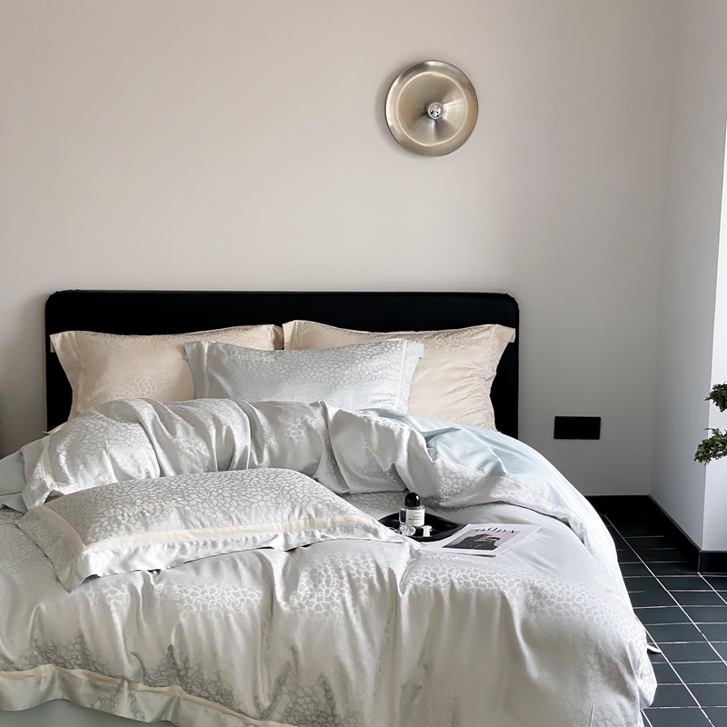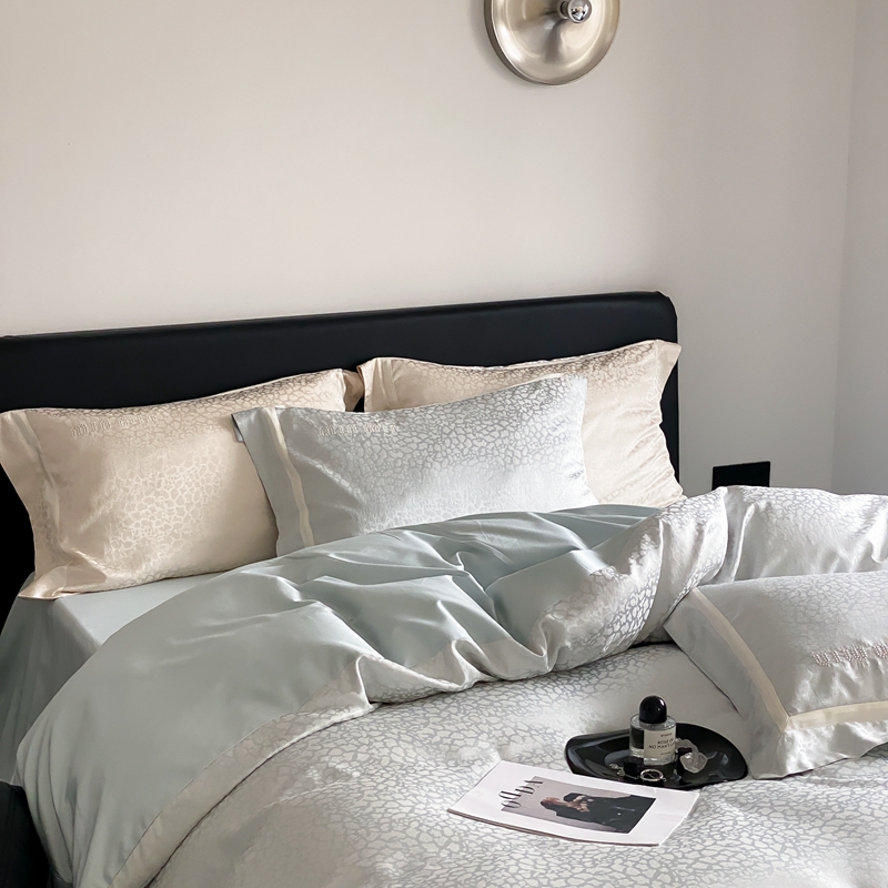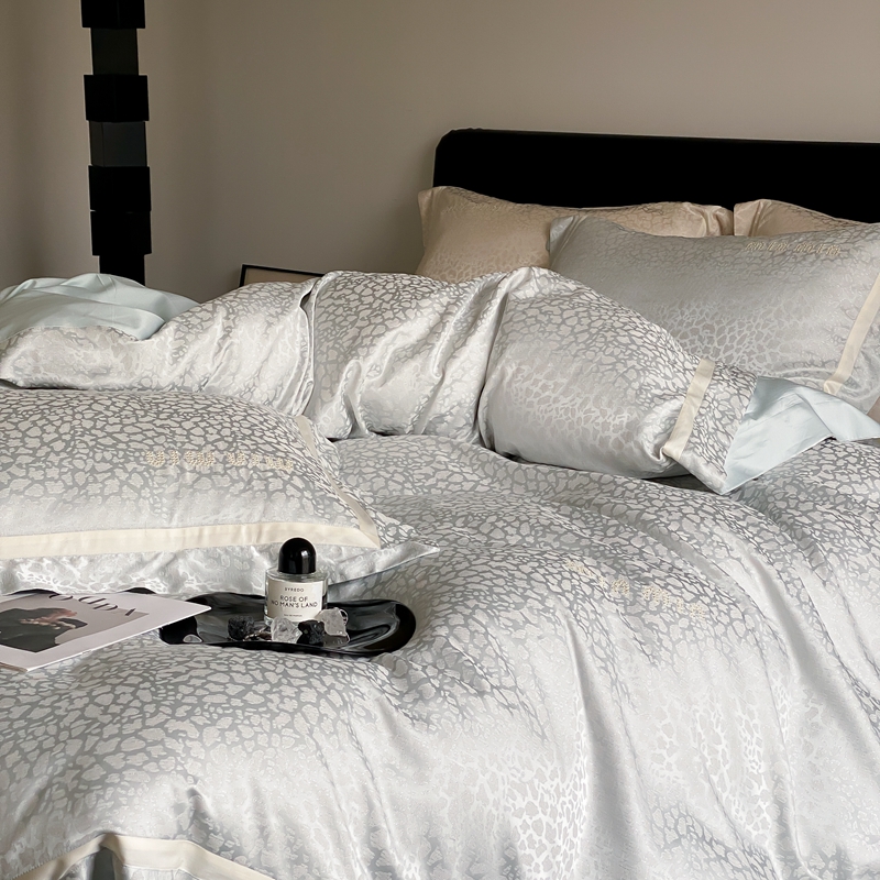 MIU缪家居 2024新款100支全棉高精密金银线色织提花四件套-慵懒之豹 慵懒之豹-冰蓝色