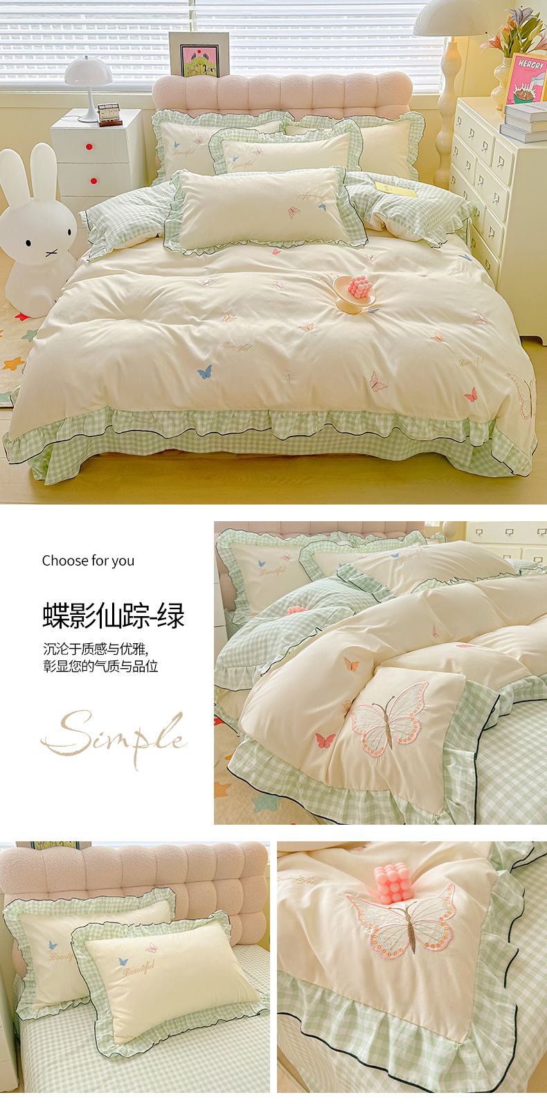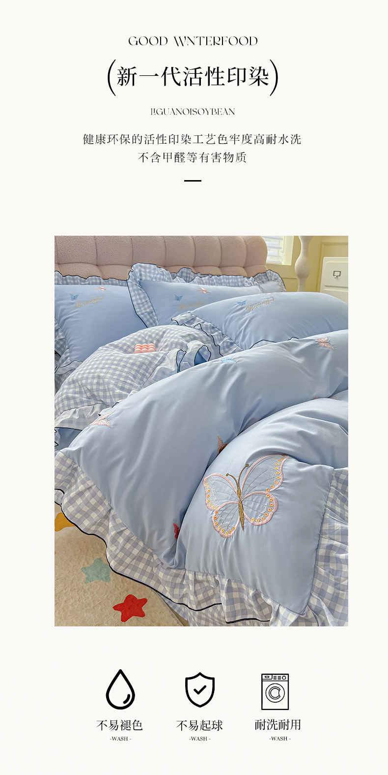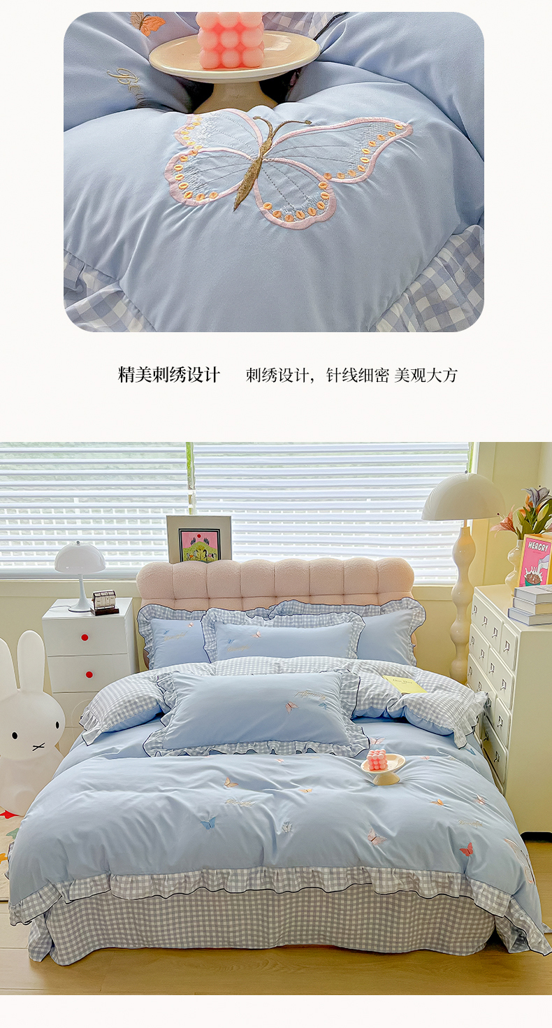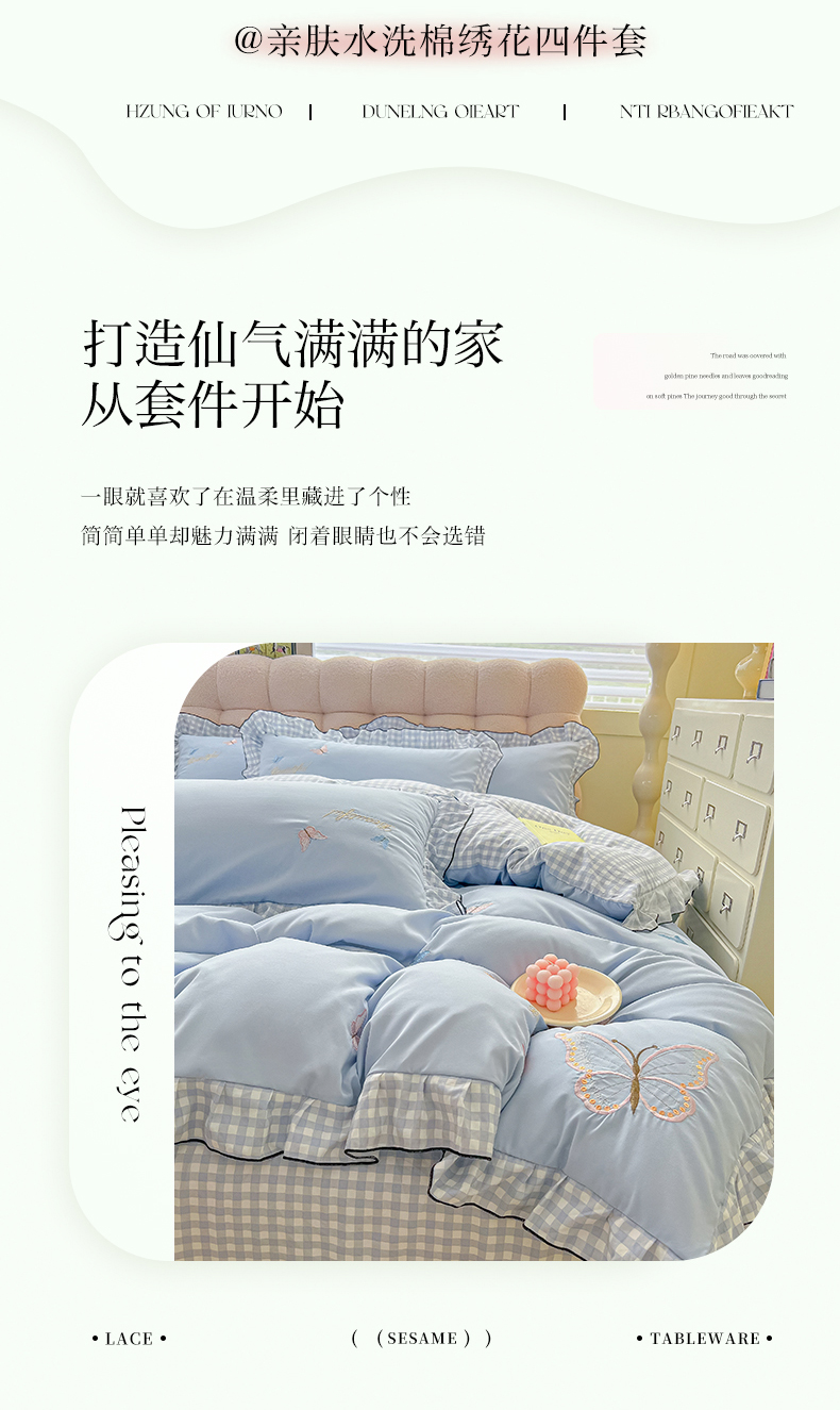 商品名称:(总)韩都家居 2024新款ins韩系水洗云朵棉刺绣四件套【蝶影仙踪】