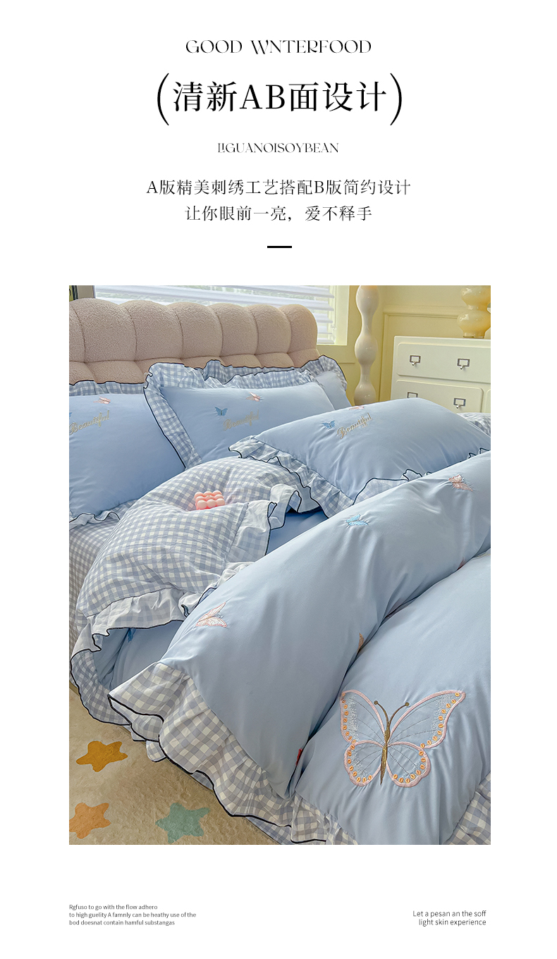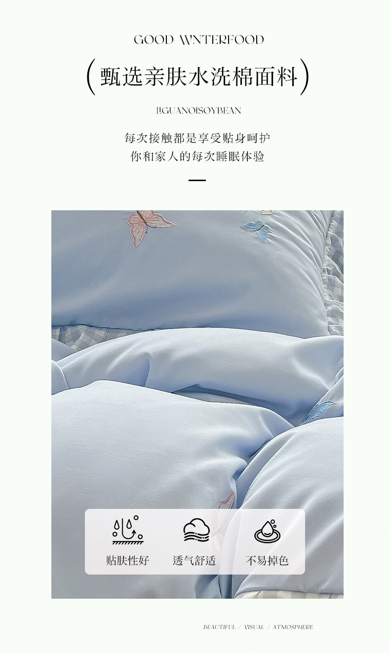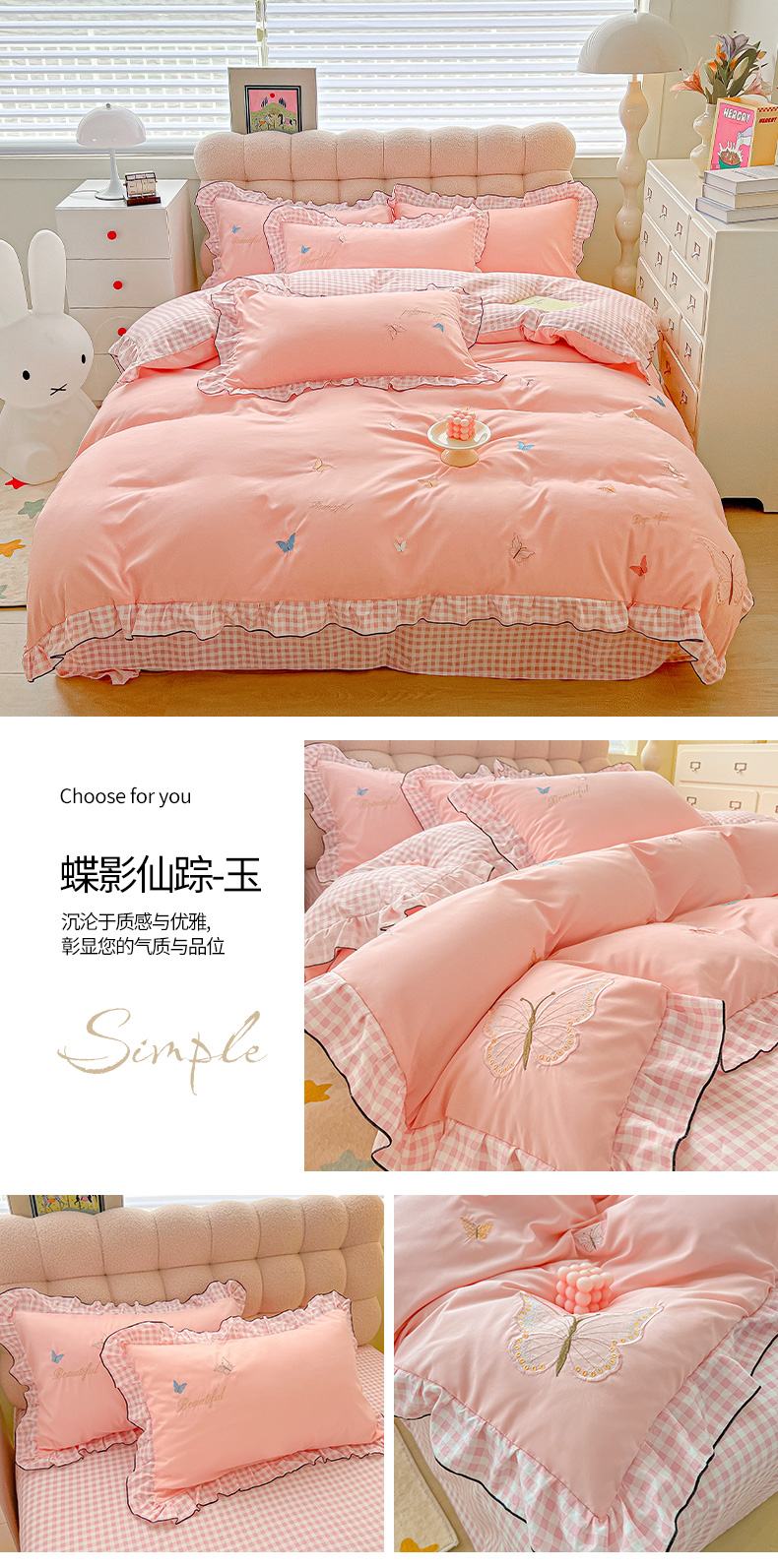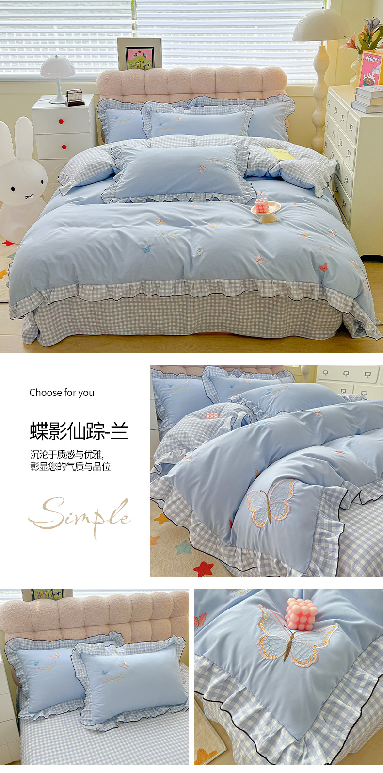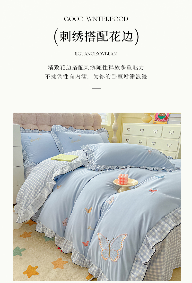 商品名称:(总)韩都家居 2024新款ins韩系水洗云朵棉刺绣四件套【蝶影仙踪】