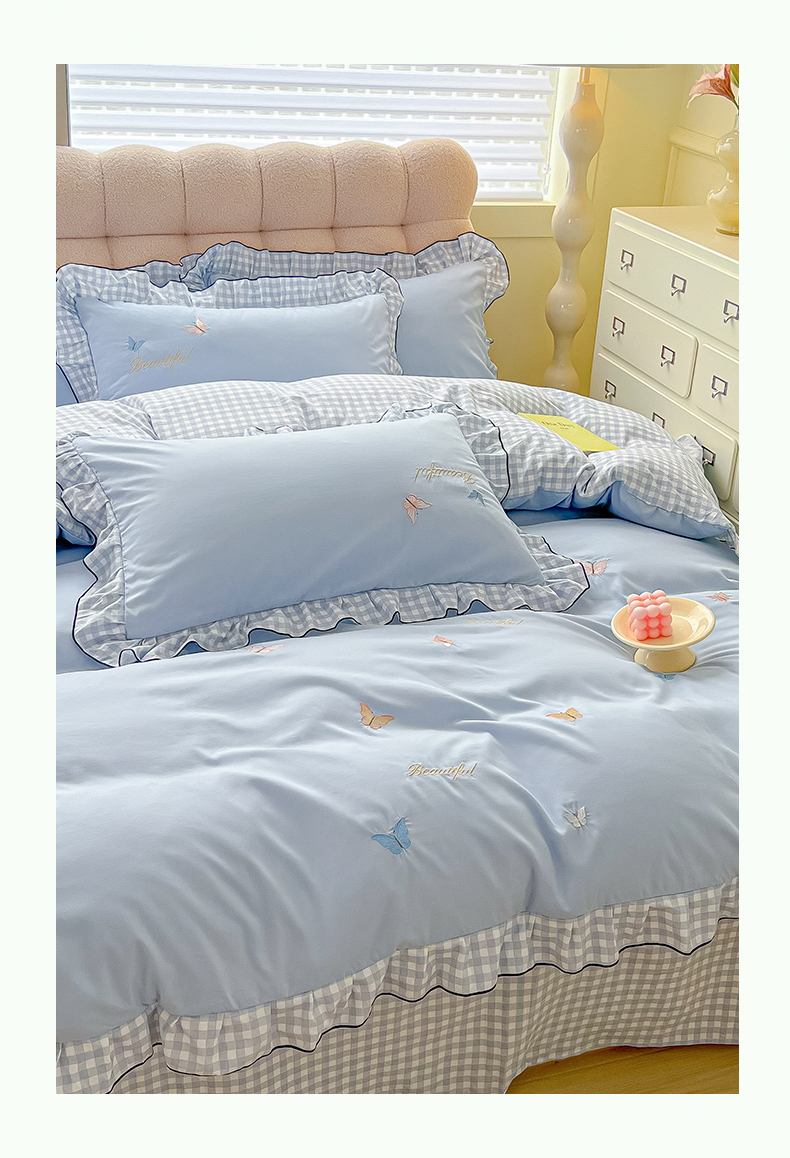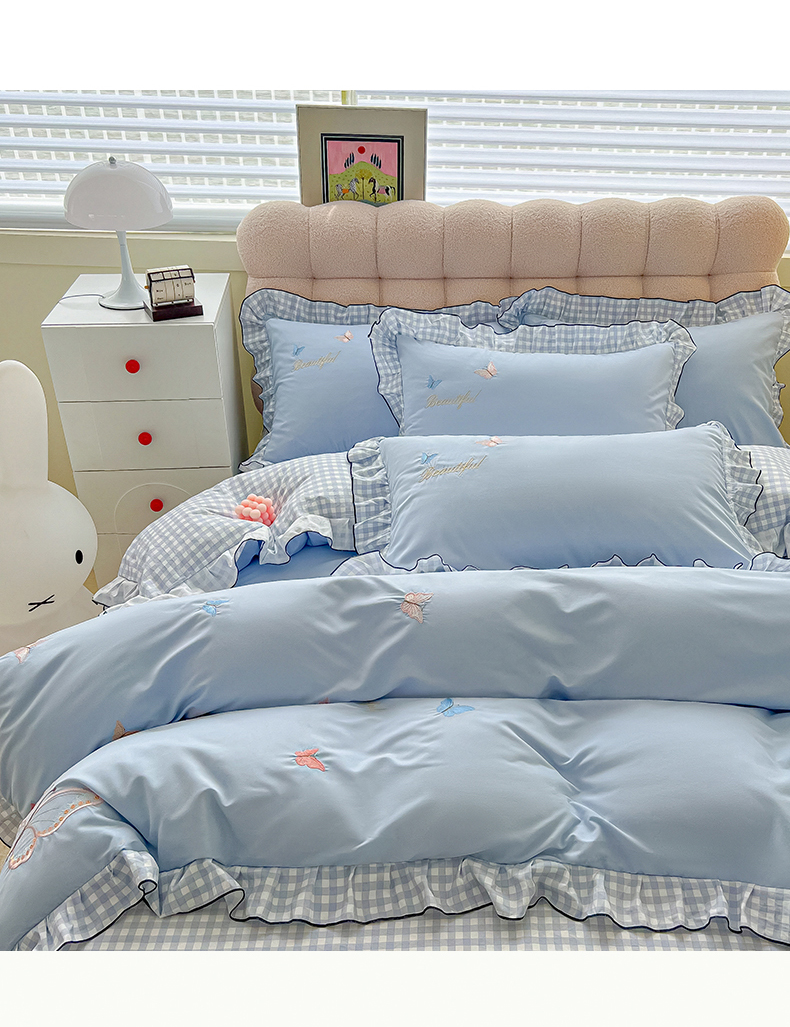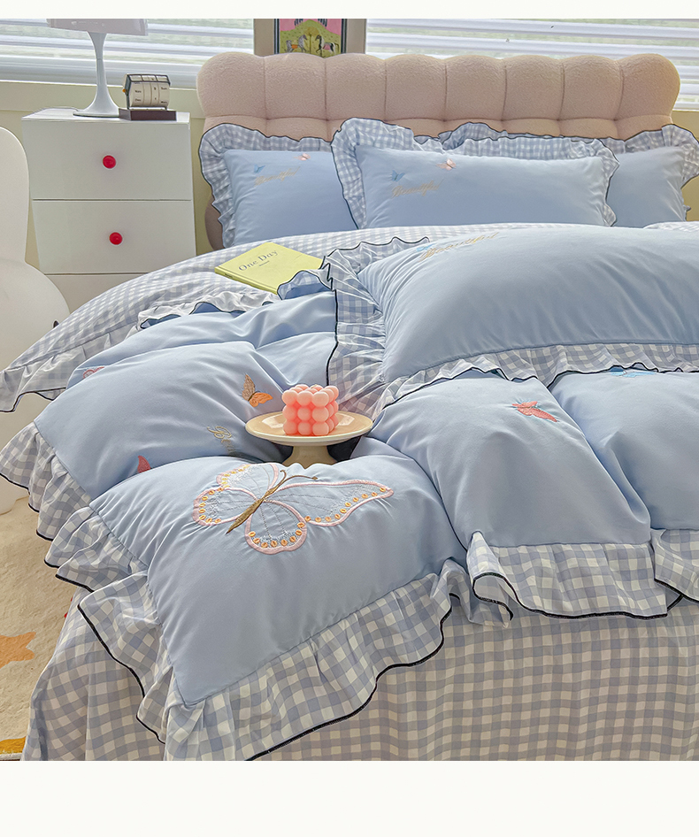 (总)韩都家居 2024新款ins韩系水洗云朵棉刺绣四件套【蝶影仙踪】