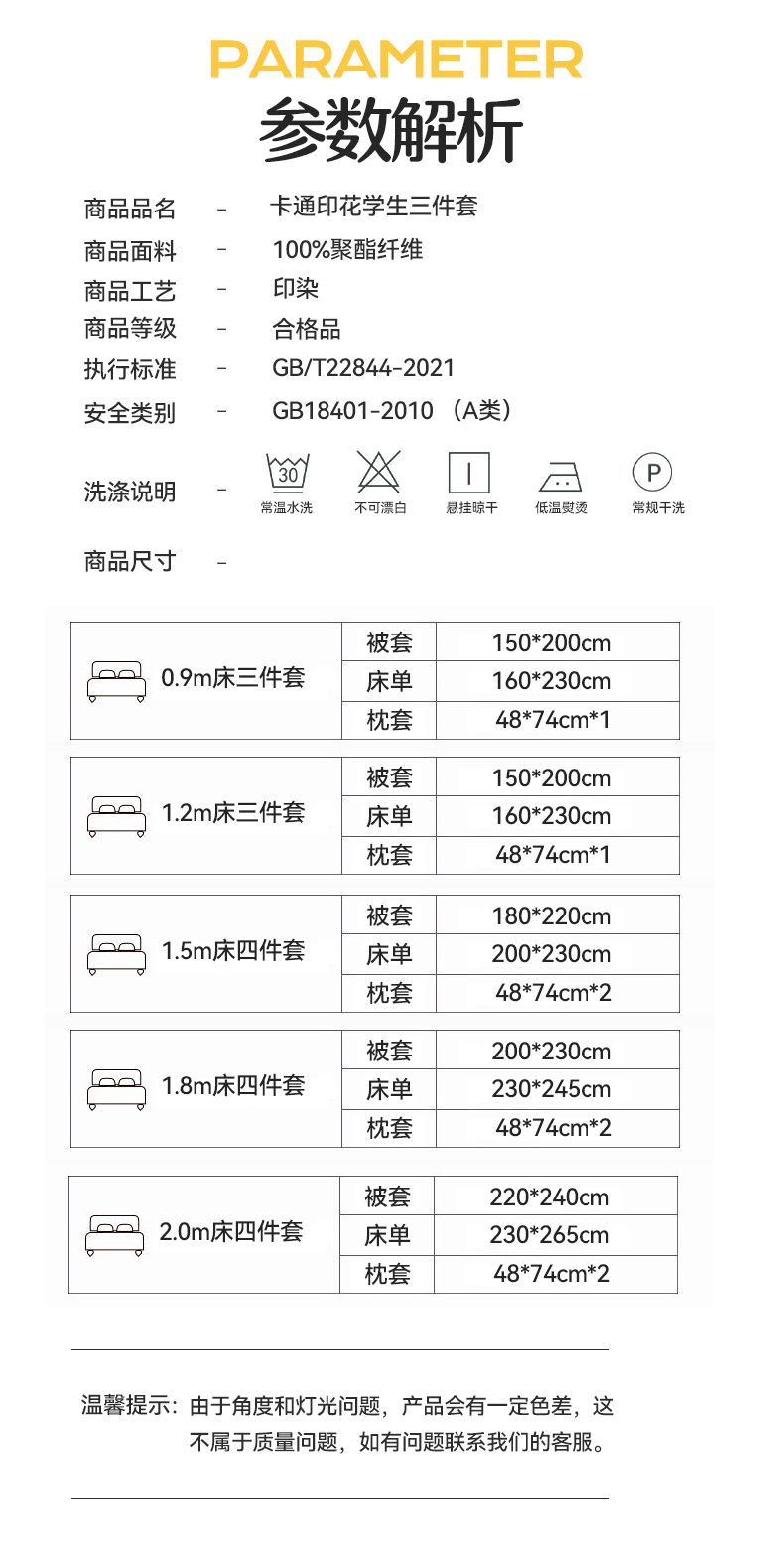 商品名称:(总)盛秋家纺 2025新款卡通印花学生三件套四件套
