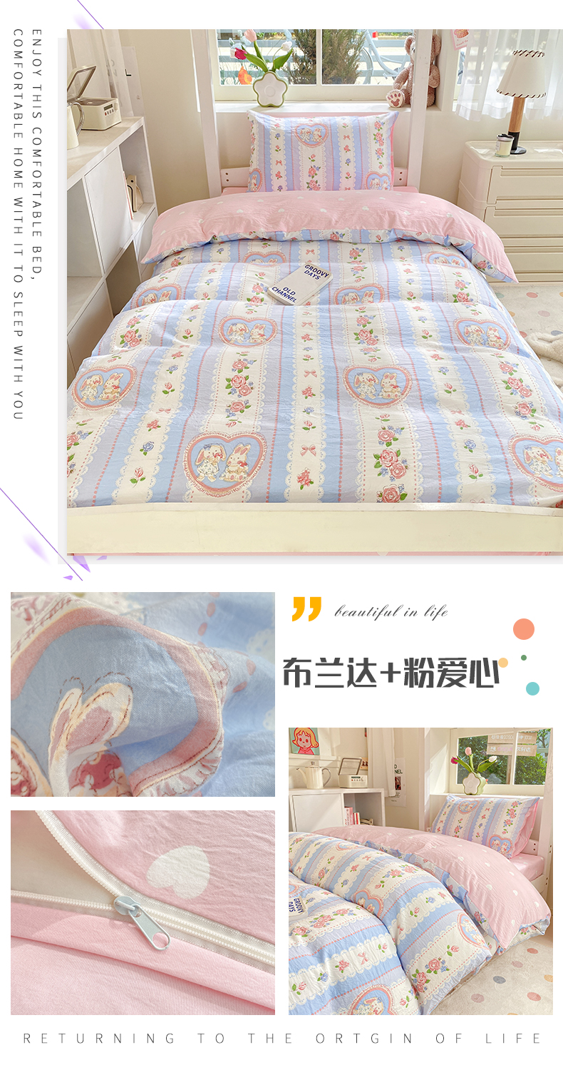 (总)盛秋家纺 2025新款水洗棉印花四件套-卡通系列,艾琳+蓝爱心,布兰达+粉爱心,彩虹+蓝爱心,恐龙宝宝+蓝爱心,秋日花语+黄小格,雅朵+粉爱心,砂糖兔+黄小格,花满天+粉爱心,开心乐园+蓝爱心,开心派对+蓝小格,腊肠狗+猫爪,铃兰+绿叶,萌宠乐园+粉爱心,情侣猫+猫爪,甜心猫+蓝爱心,着迷+爱心结,紫韵+星黛紫