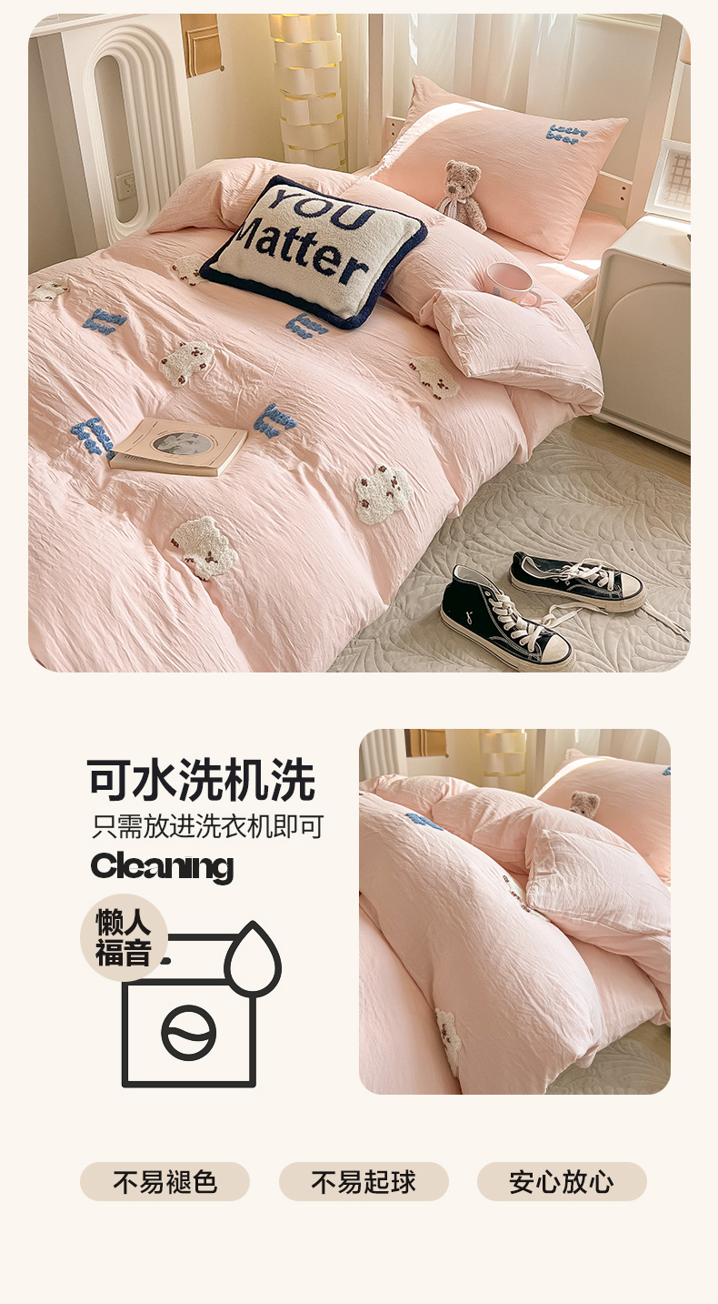 (总)韩巢家纺 2025新款水洗棉大花边被套四件套直播热销款学生宿舍被罩床单三件套(提供卖家秀),春日与玫瑰【大花边款】,繁花似梦【大花边款】,花时宇间【大花边款】,灰蒙小狗【大花边款】,久期诗朵-黄【大花边款】,可可腊肠犬【大花边款】,奶油樱桃【大花边款】,软糖猫【大花边款】,甜樱恋曲【大花边款】,温暖粉心【大花边款】,小花野-紫【大花边款】,小熊冰淇淋【大花边款】,星梦蝶结【大花边款】,幸运可爱兔【大花边款】,摘樱桃的小熊【大花边款】