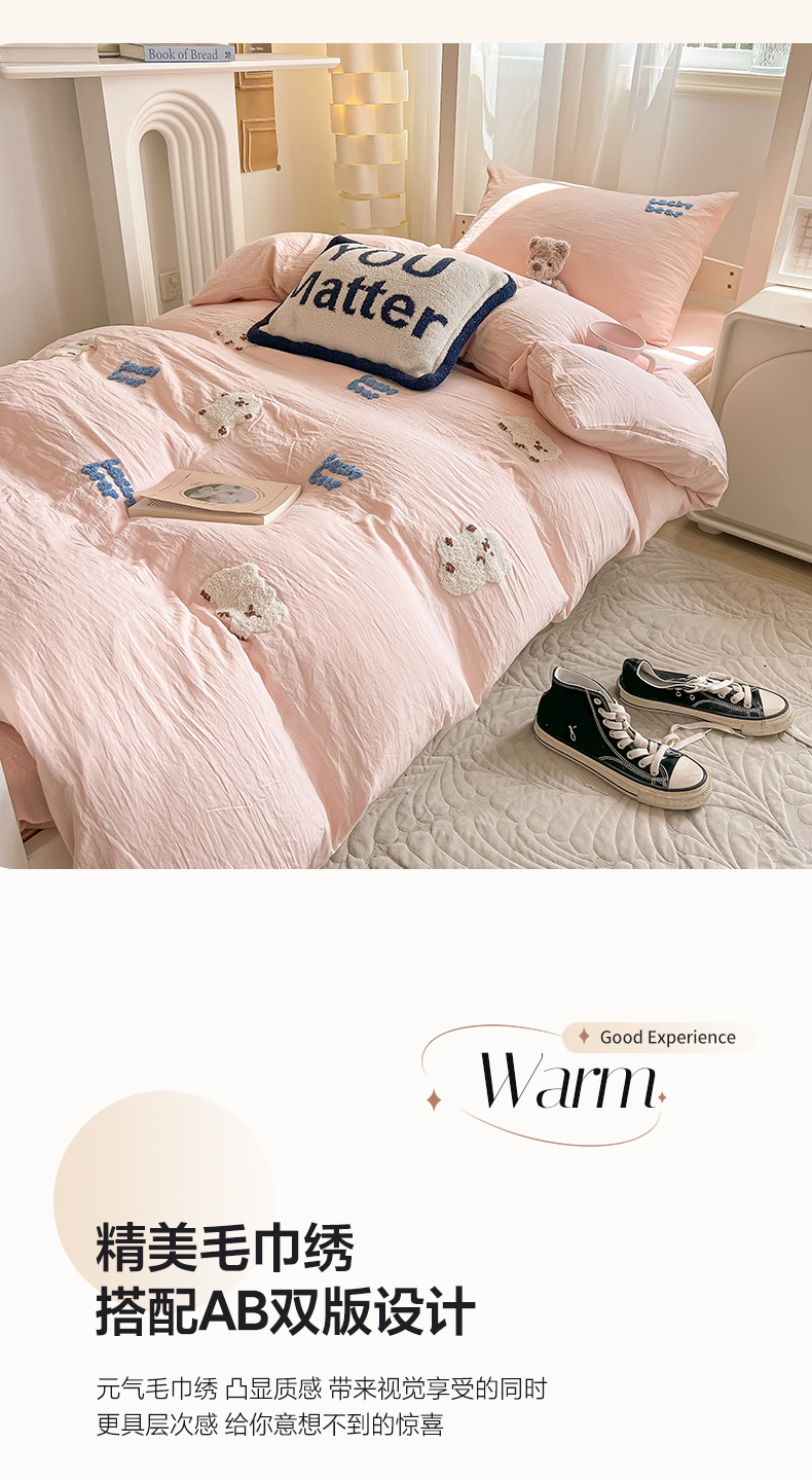 (总)韩巢家纺 2024新款学生宿舍寝室上下铺超柔水洗棉毛巾绣被套床单三件套-小白熊(提供卖家秀)