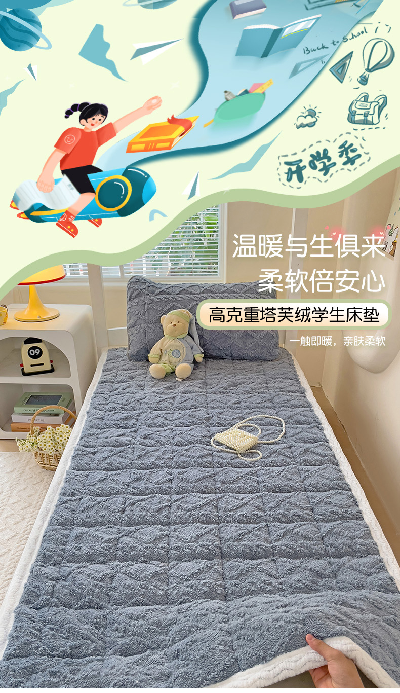 (总)米柳家纺 2024新款塔芙绒夹棉垫子,灰色,咖色,蓝色,绿色,米色,紫色