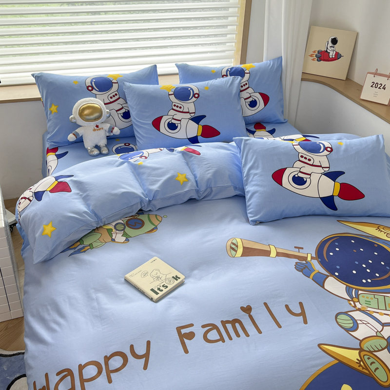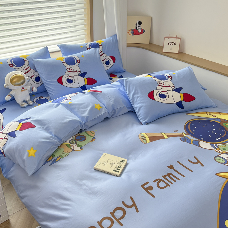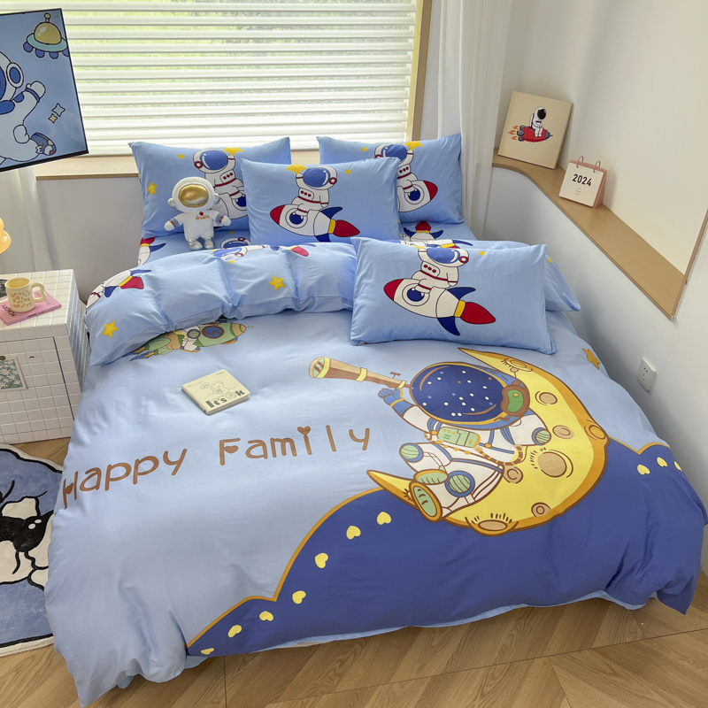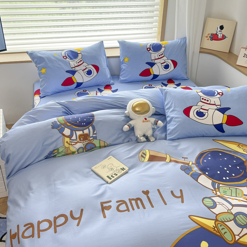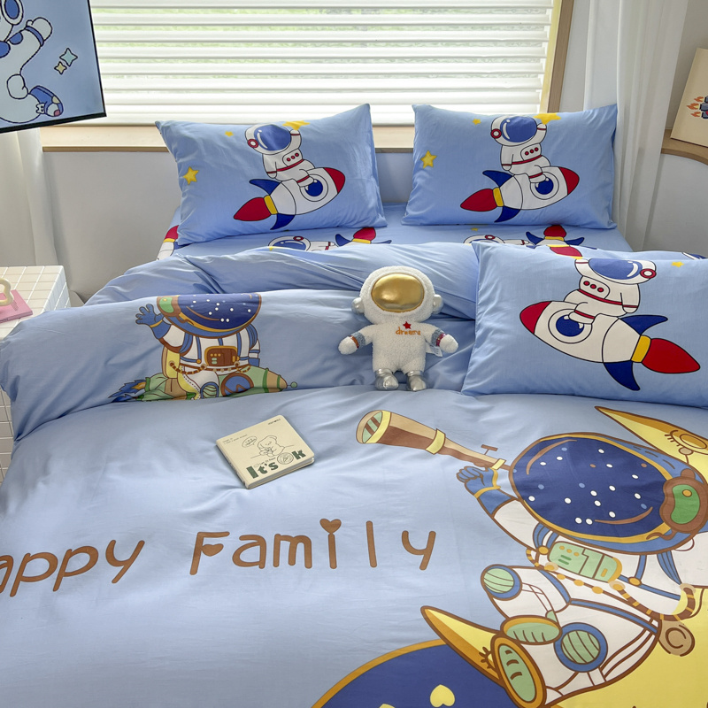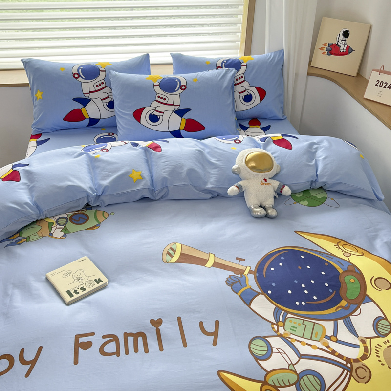 当前位置: 91家纺网 > 商品网购 > 床品套件 > 四件套 > 全棉普通四件套 > 孩子王 2025新款亲肤活性大版纯棉专版太空人卡通学生儿童宿舍四件套系列 流浪月球