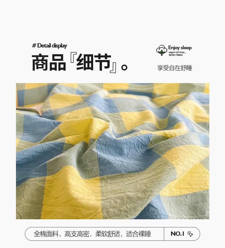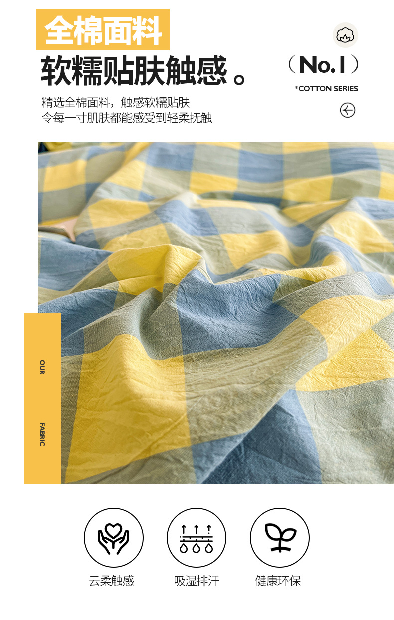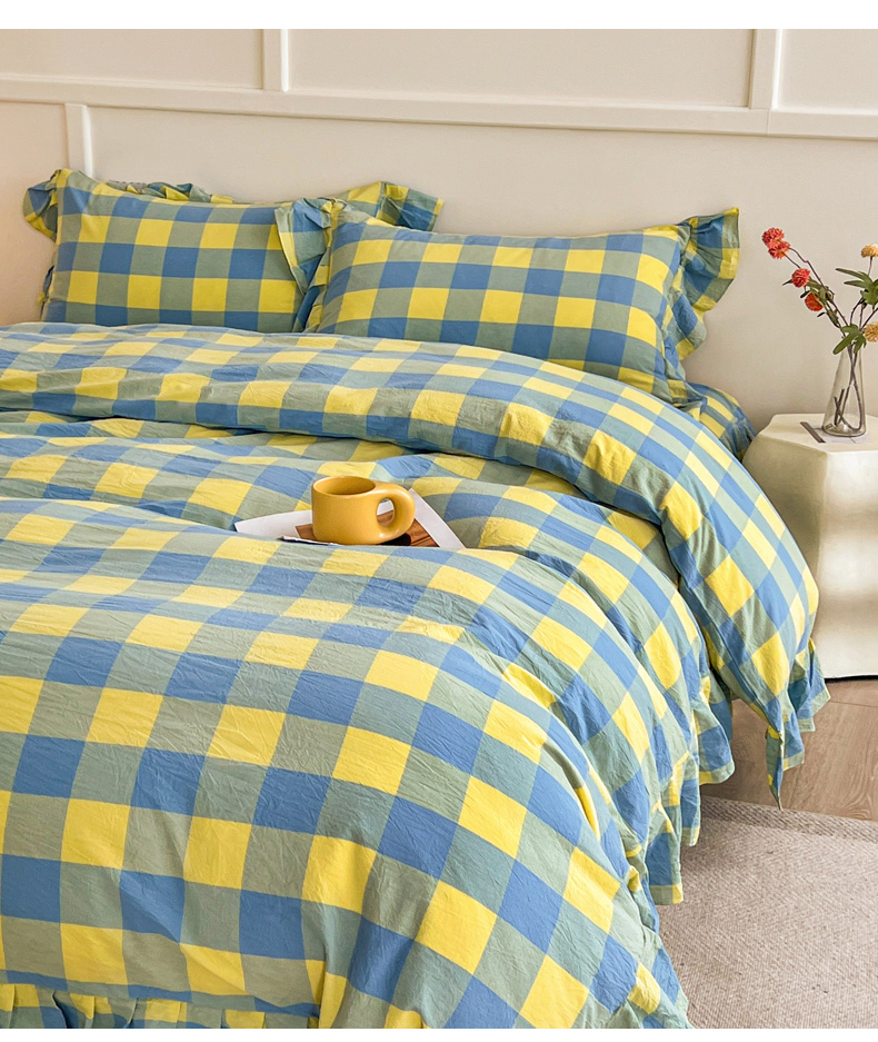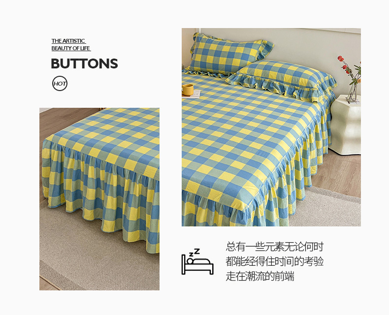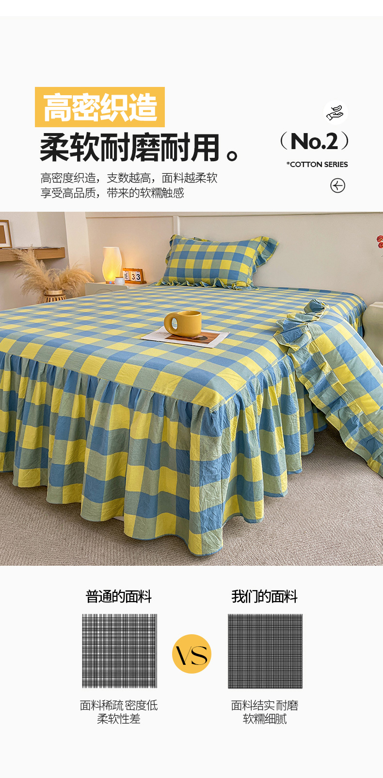 当前位置: 91家纺网 > 商品网购 > 床品套件 > 四件套 > 全棉普通四件套 > 糯米猪家纺 2024新款全棉水洗棉床裙四件套 兰黄大格
