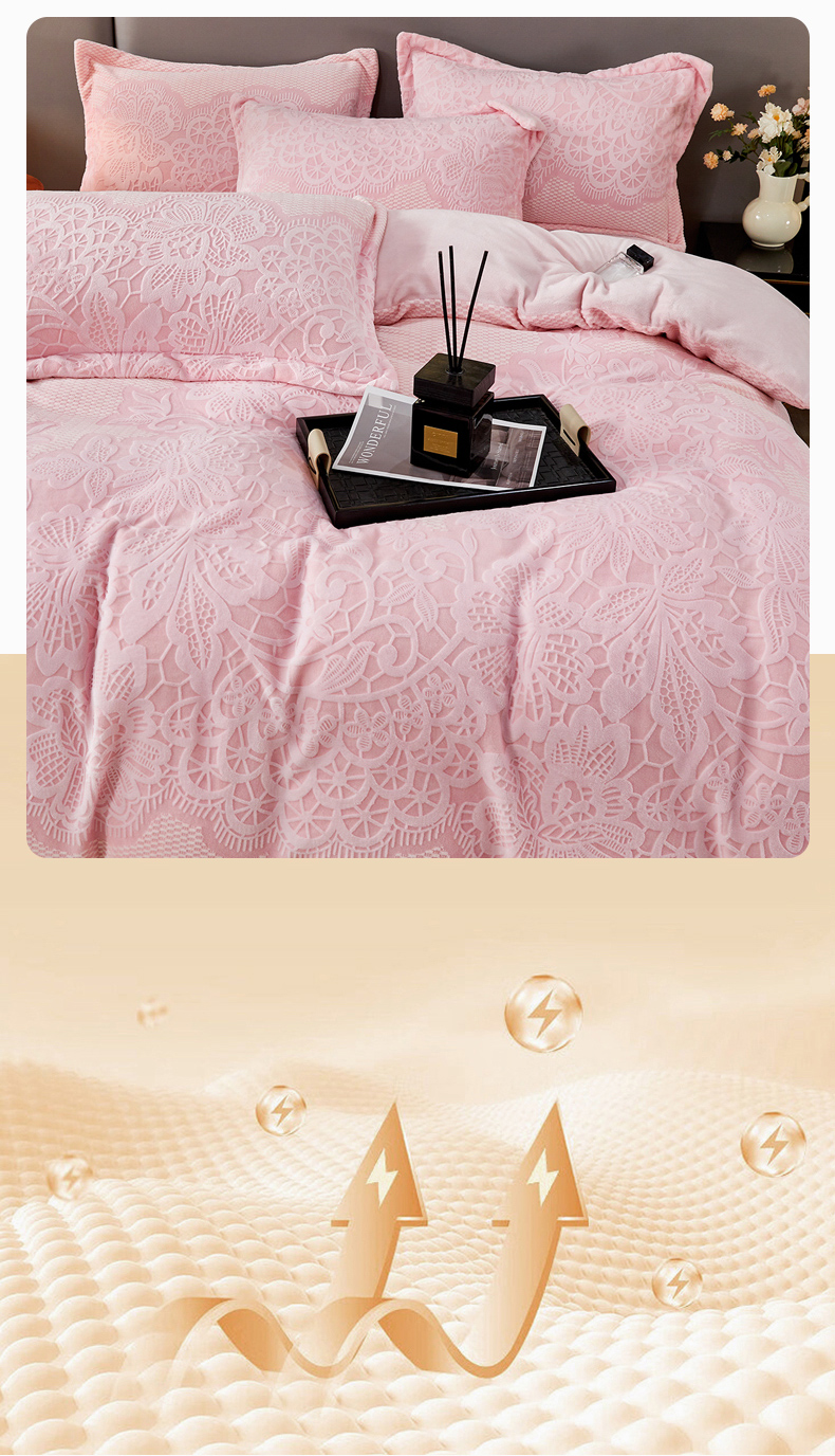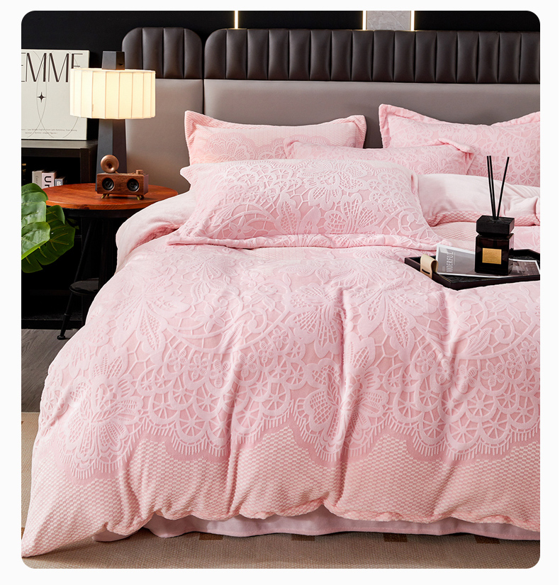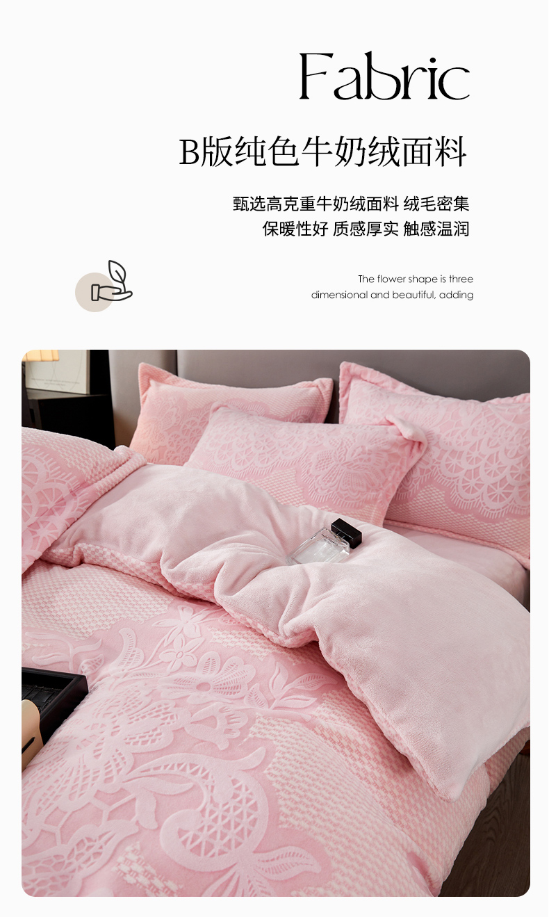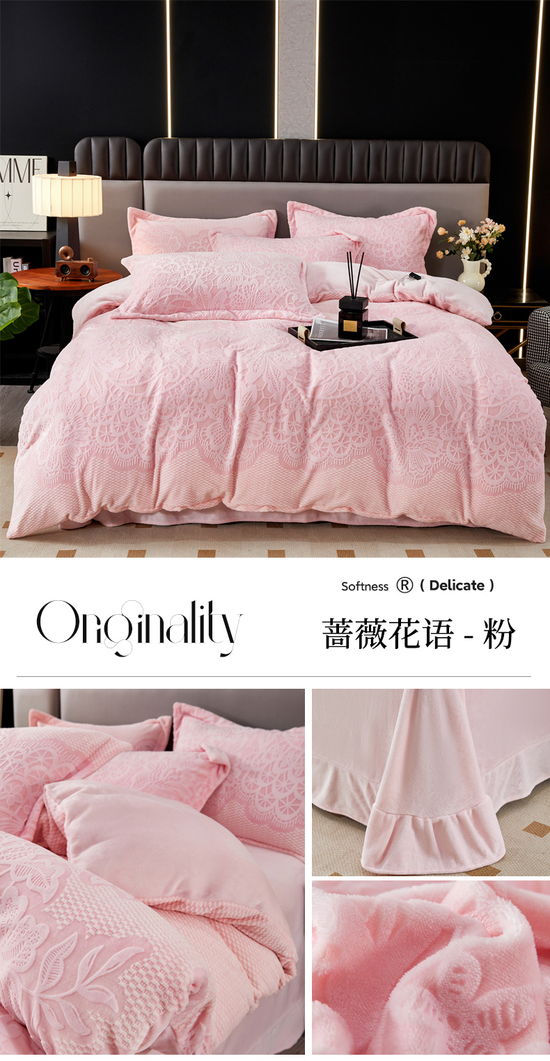 2024新款A类8斤雕花绒牛奶绒四件套 蔷薇花语-粉