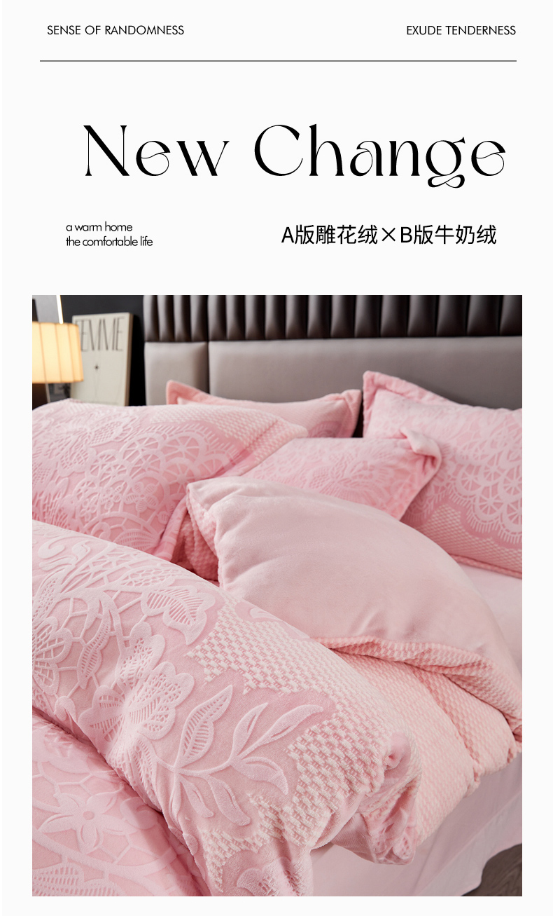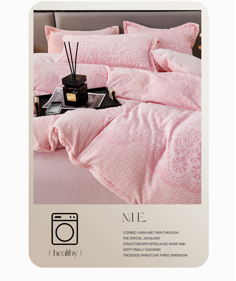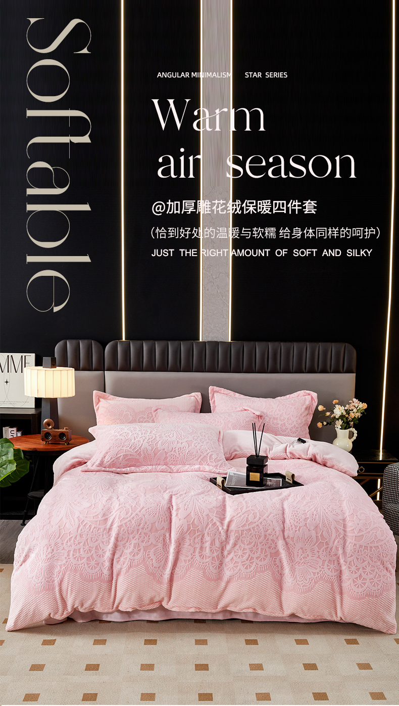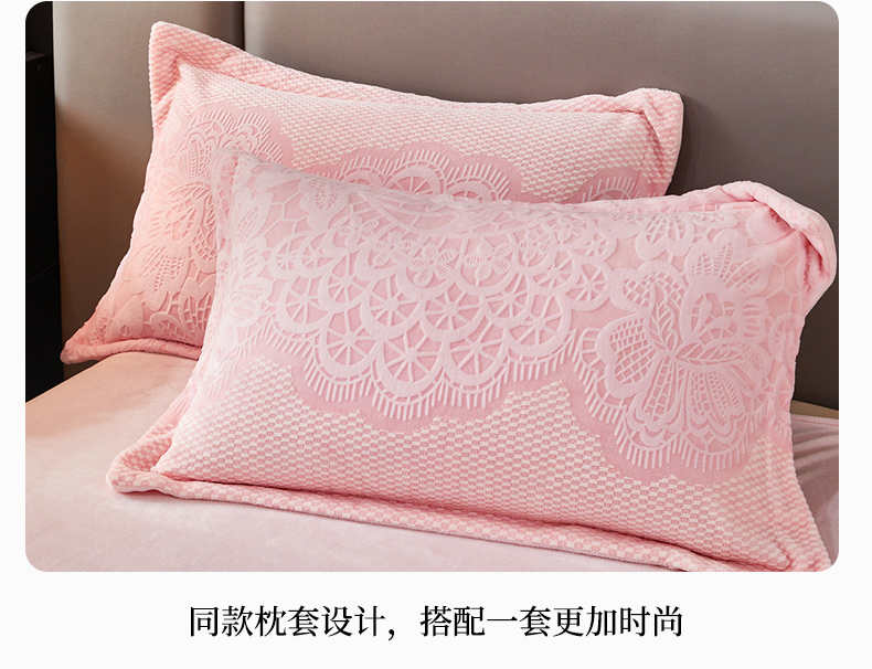 2024新款A类8斤雕花绒牛奶绒四件套 蔷薇花语-粉