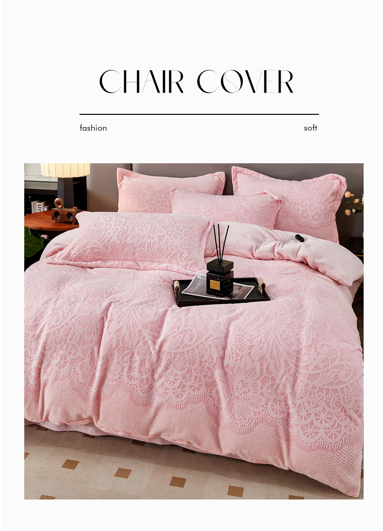 商品名称:2024新款A类8斤雕花绒牛奶绒四件套 蔷薇花语-粉