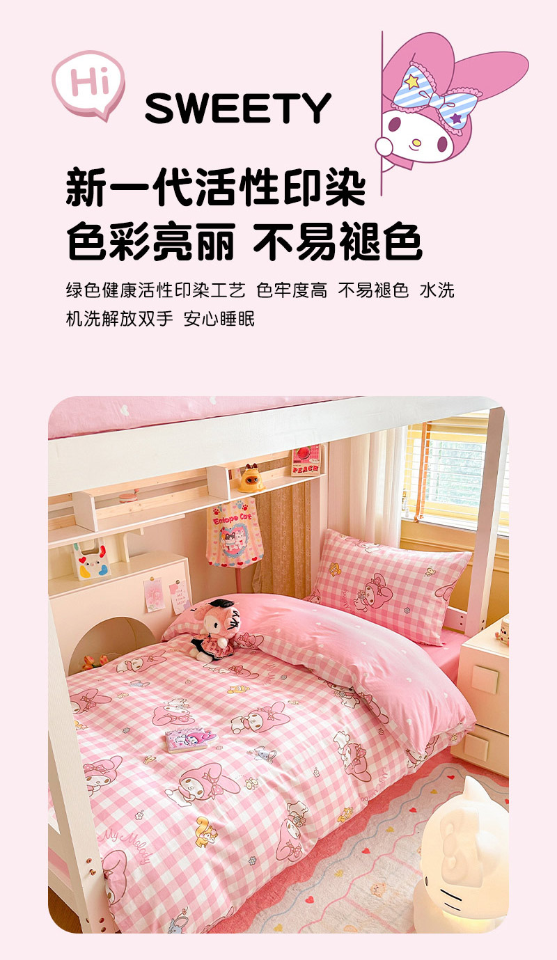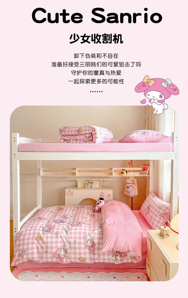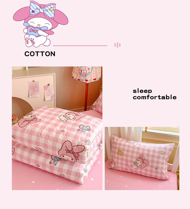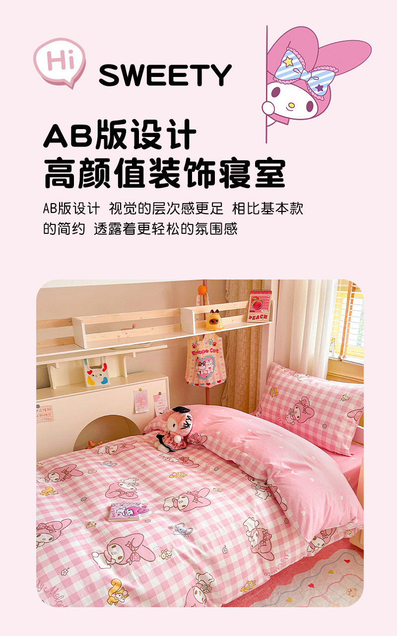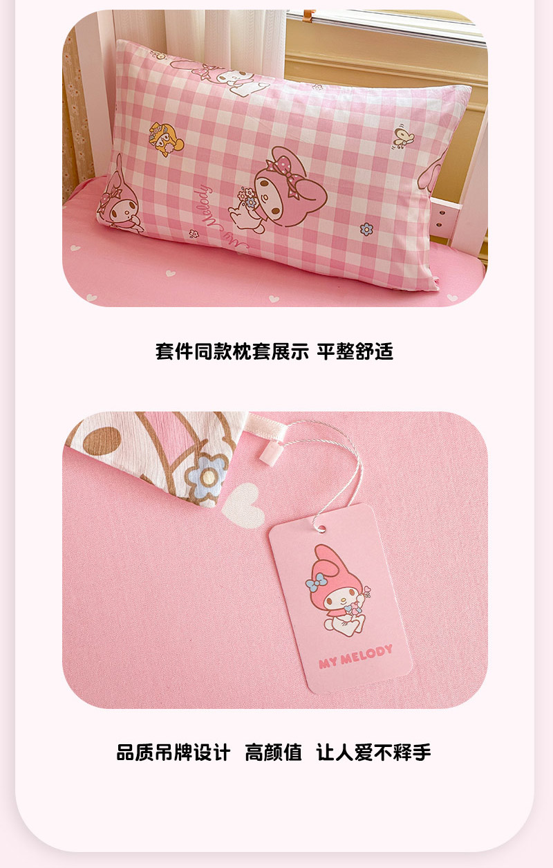 当前位置: 91家纺网 > 商品网购 > 床品套件 > 四件套 > 全棉普通四件套 > 蓝邻家纺 2024新款三丽鸥正版授权学生宿舍全棉印花四件套 粉格美乐蒂