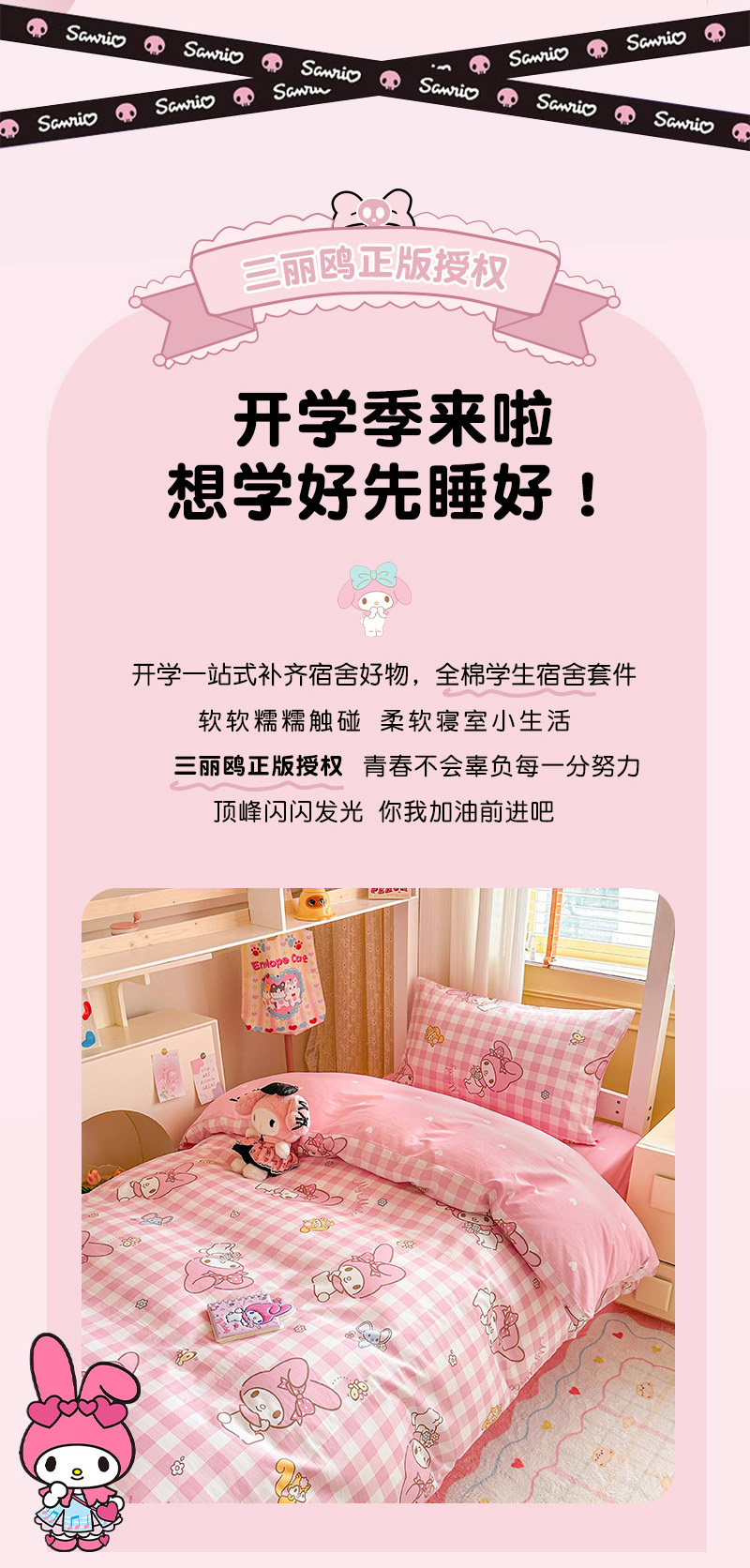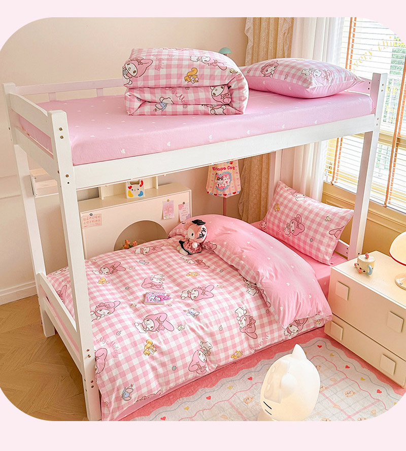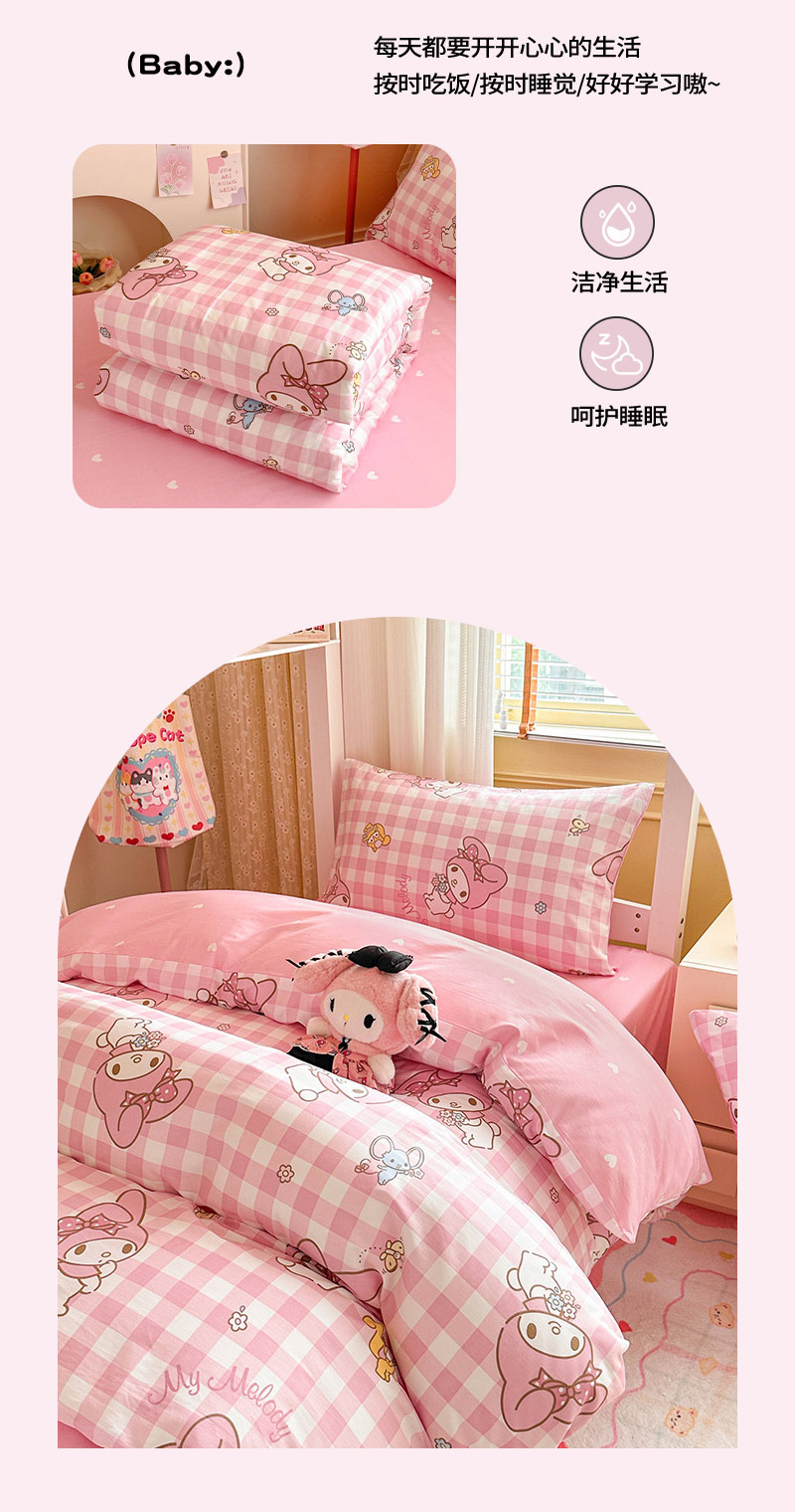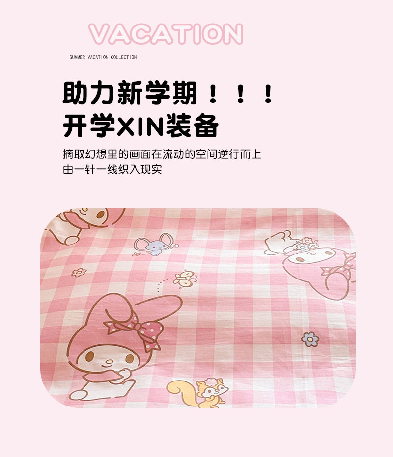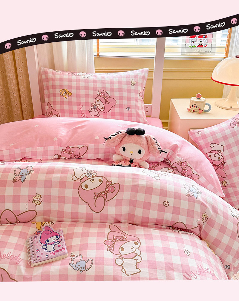 当前位置: 91家纺网 > 商品网购 > 床品套件 > 四件套 > 全棉普通四件套 > 蓝邻家纺 2024新款三丽鸥正版授权学生宿舍全棉印花四件套 粉格美乐蒂