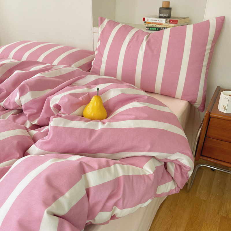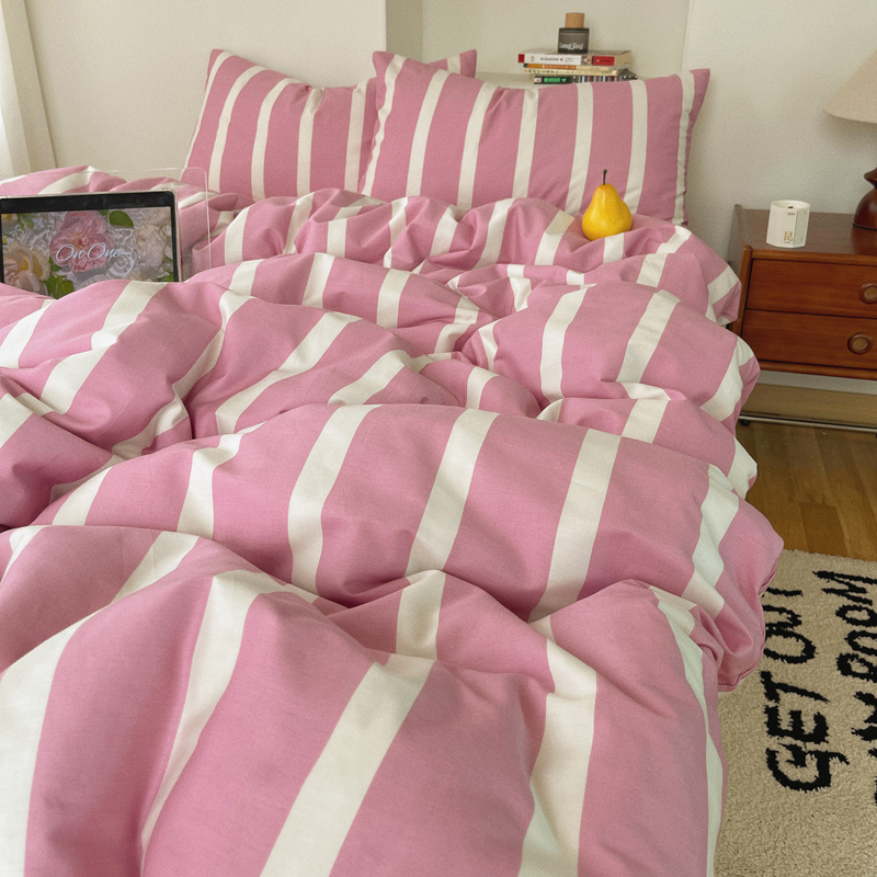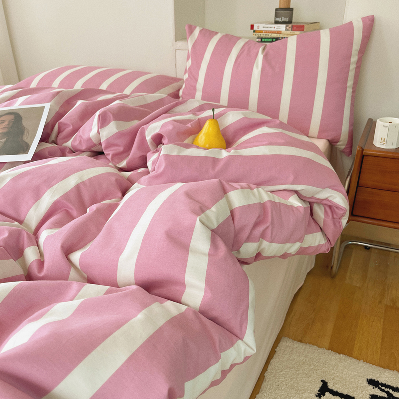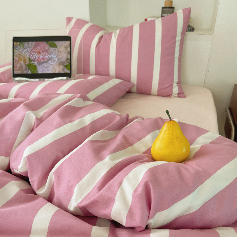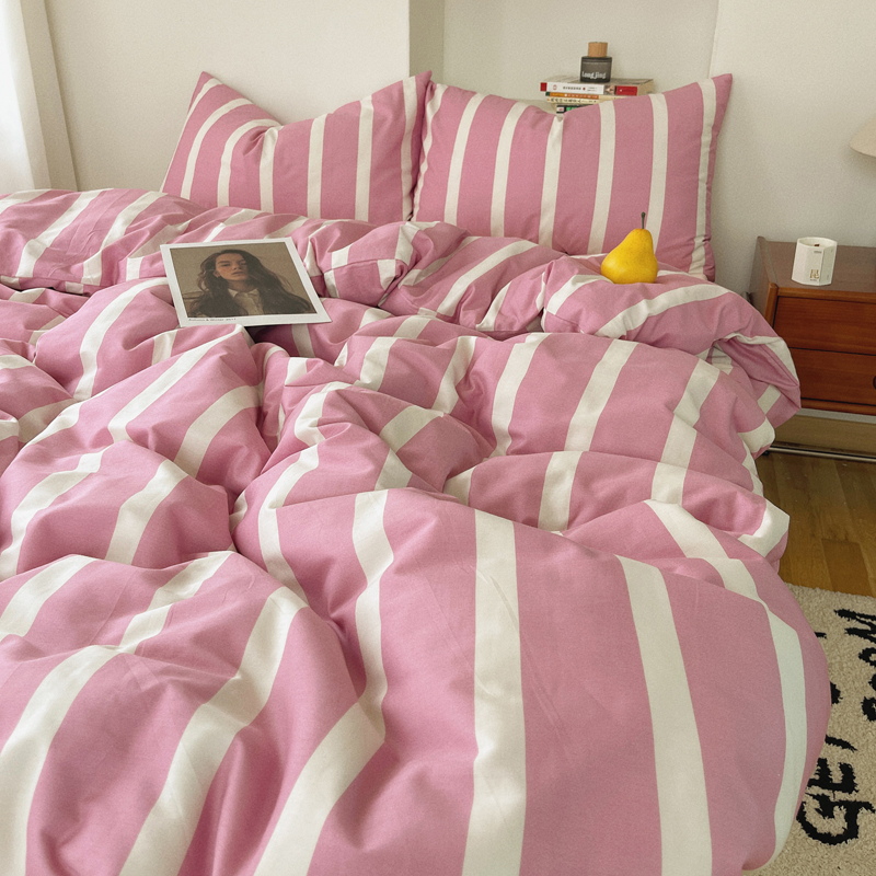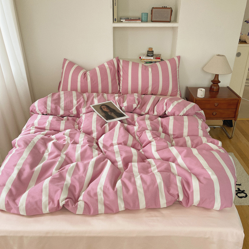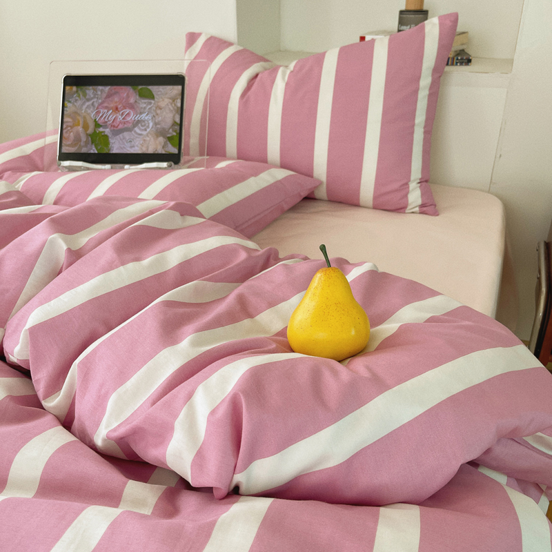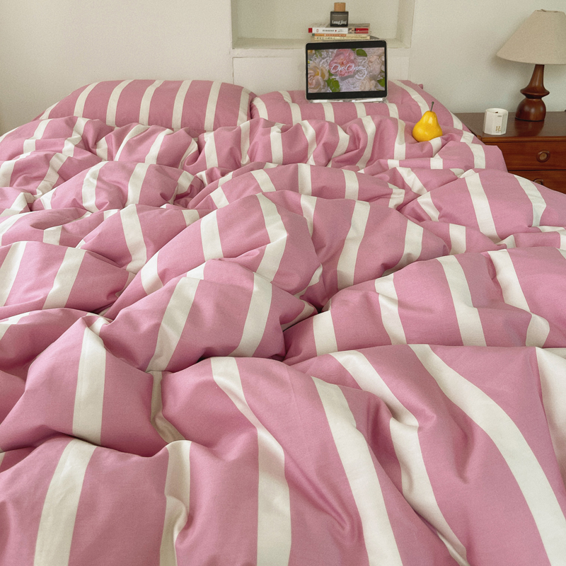 商品名称:桃喜 2024新款ins风全棉混搭四件套系列 粉色条纹(同色)
