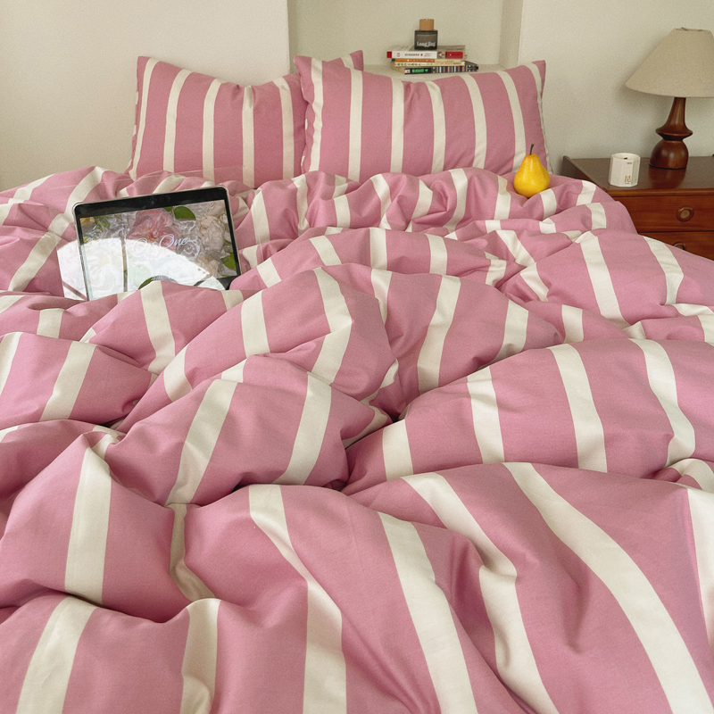 桃喜 2024新款ins风全棉混搭四件套系列 粉色条纹(同色)