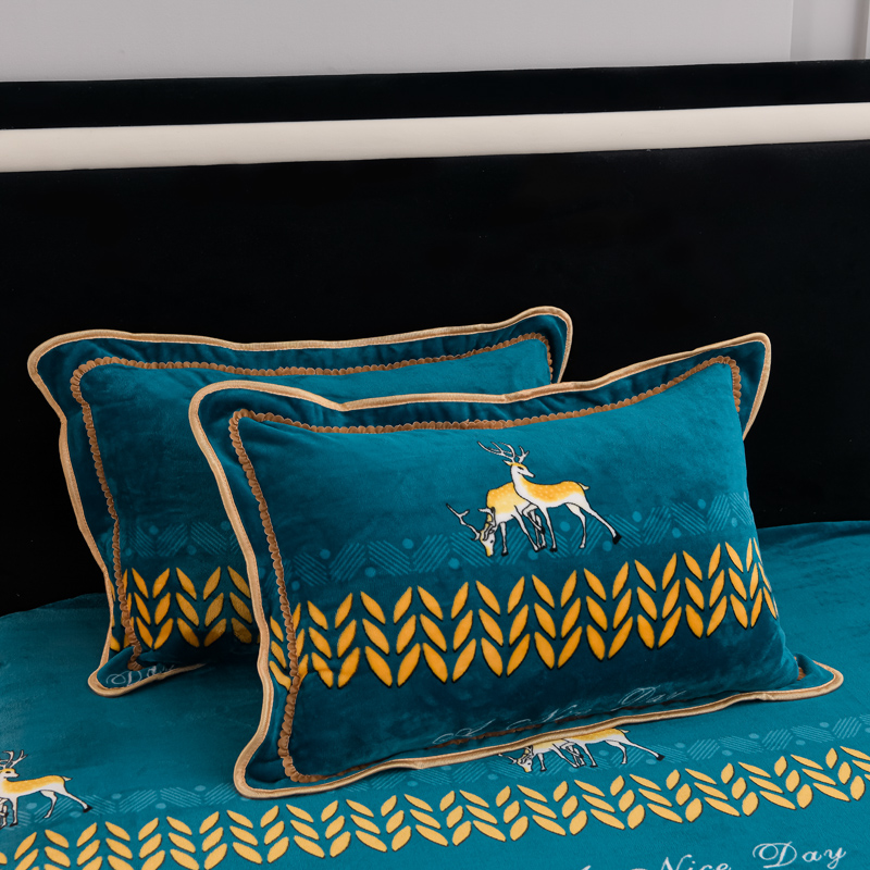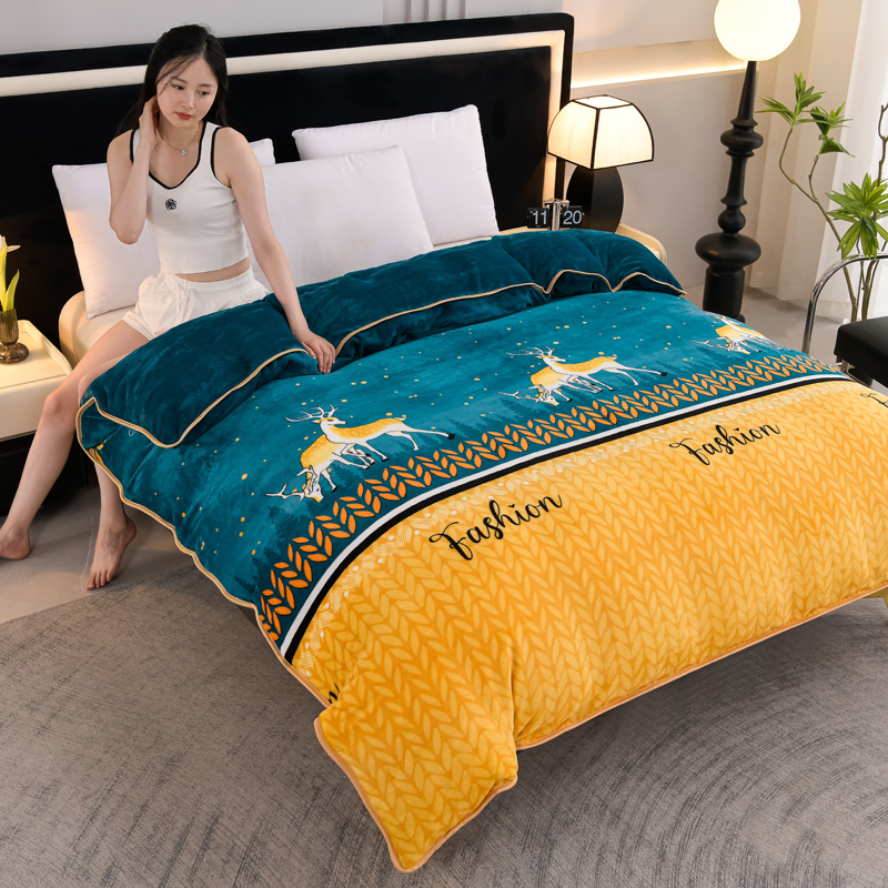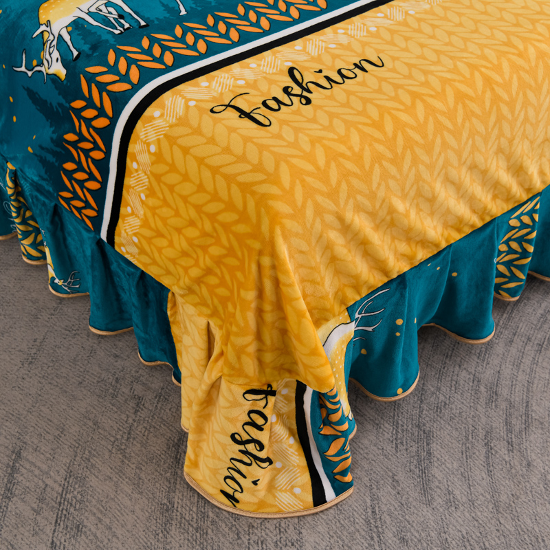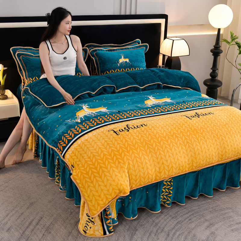 千嘻汇 2025新款7斤牛奶绒金貂法莱绒床裙款保暖绒四件套 一鹿有你