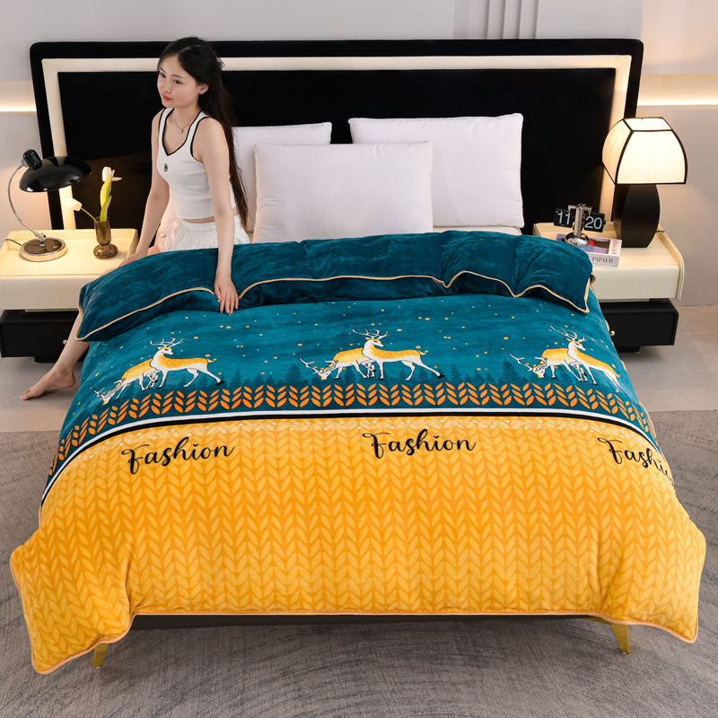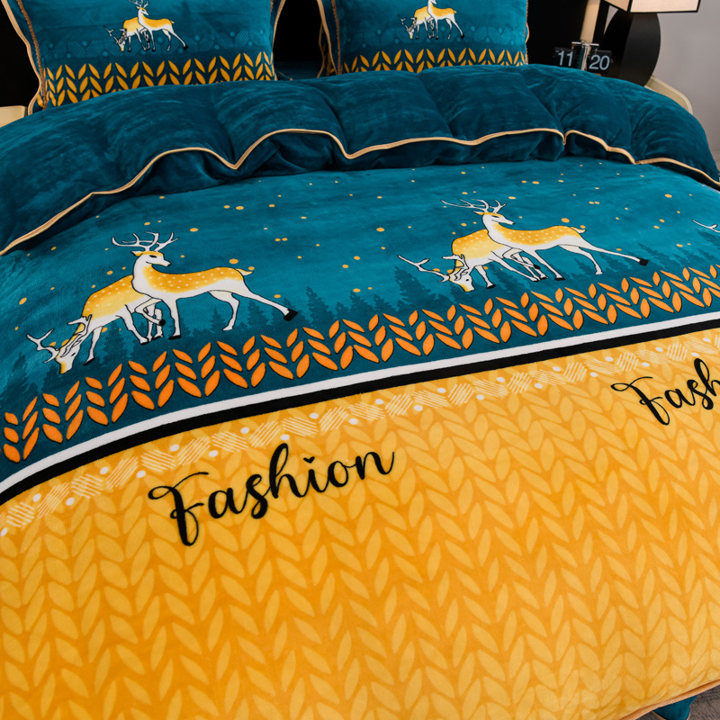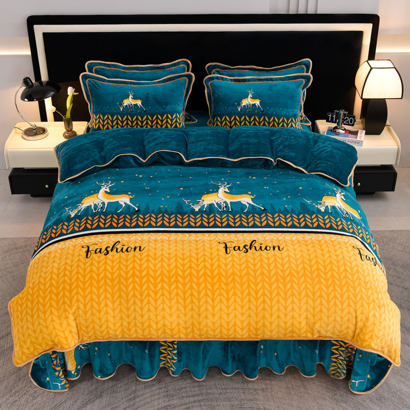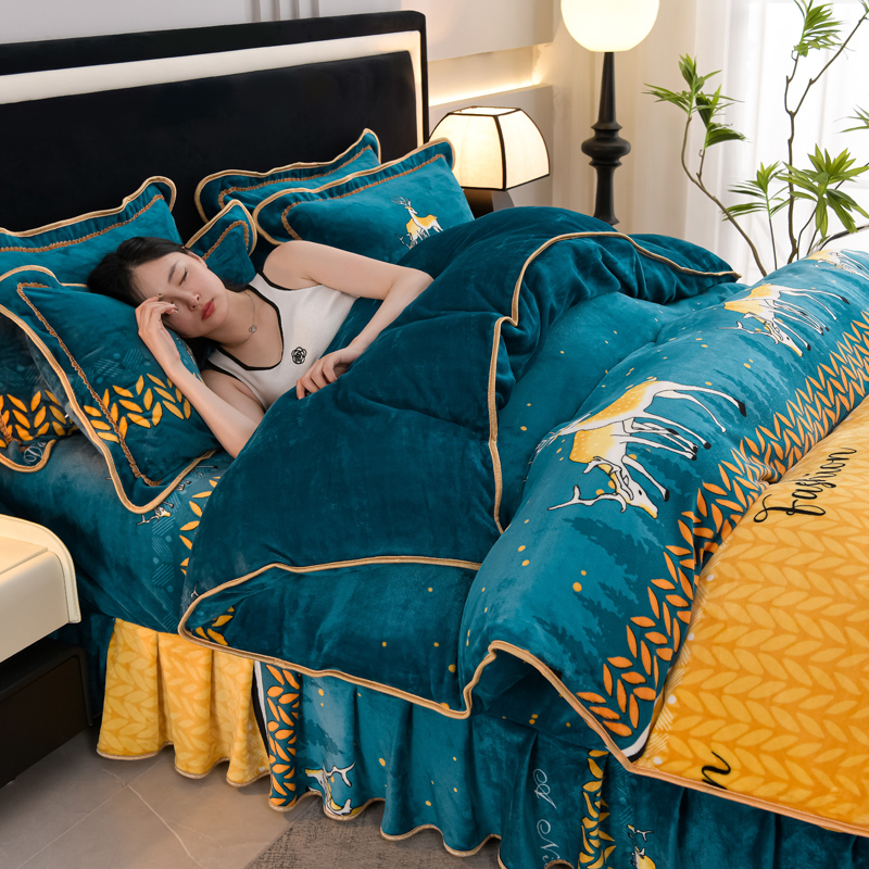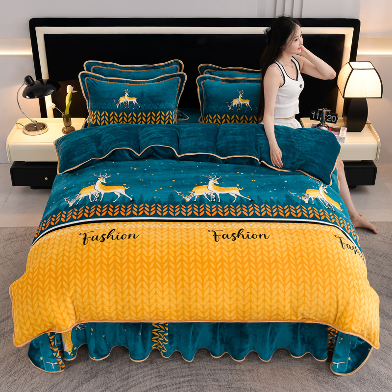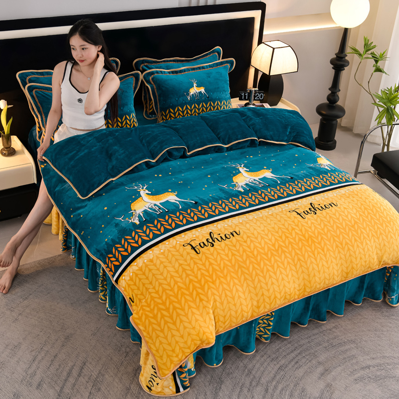 商品名称:千嘻汇 2025新款7斤牛奶绒金貂法莱绒床裙款保暖绒四件套 一鹿有你