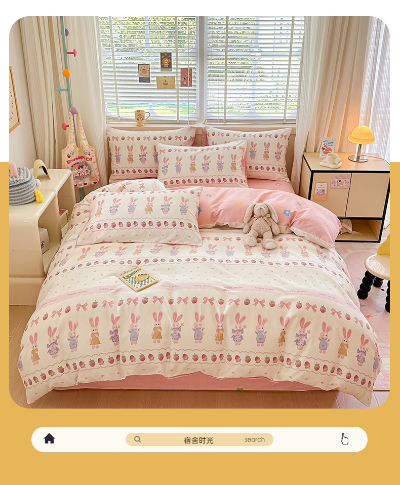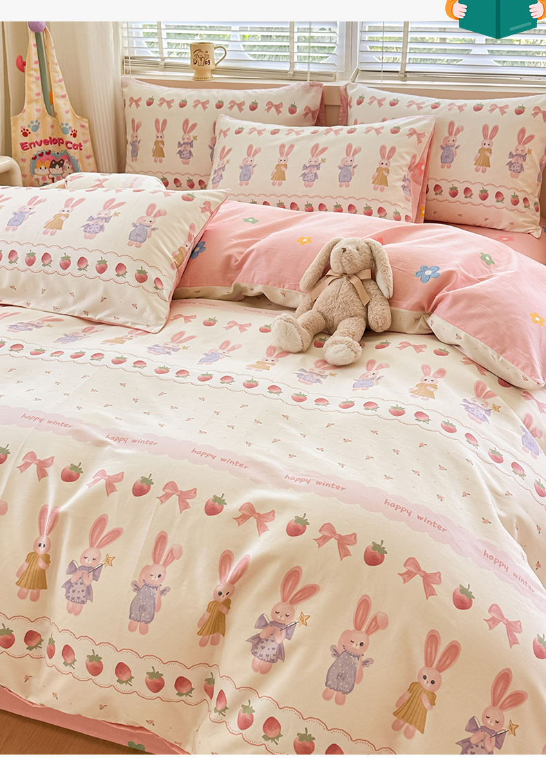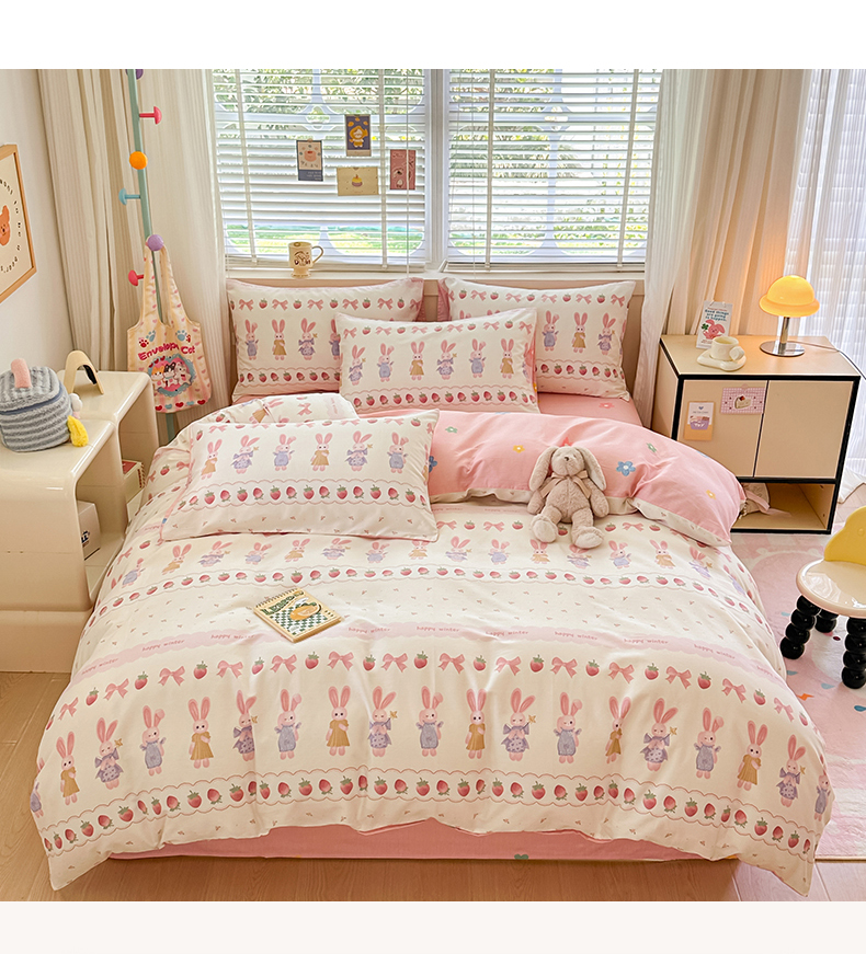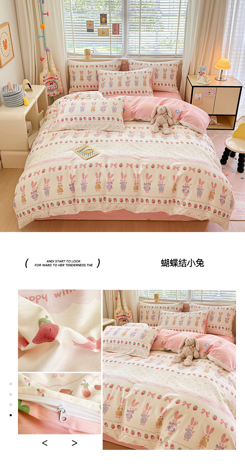 简宜家居(朝初家纺)2025新款40支全棉四件套 蝴蝶结小兔