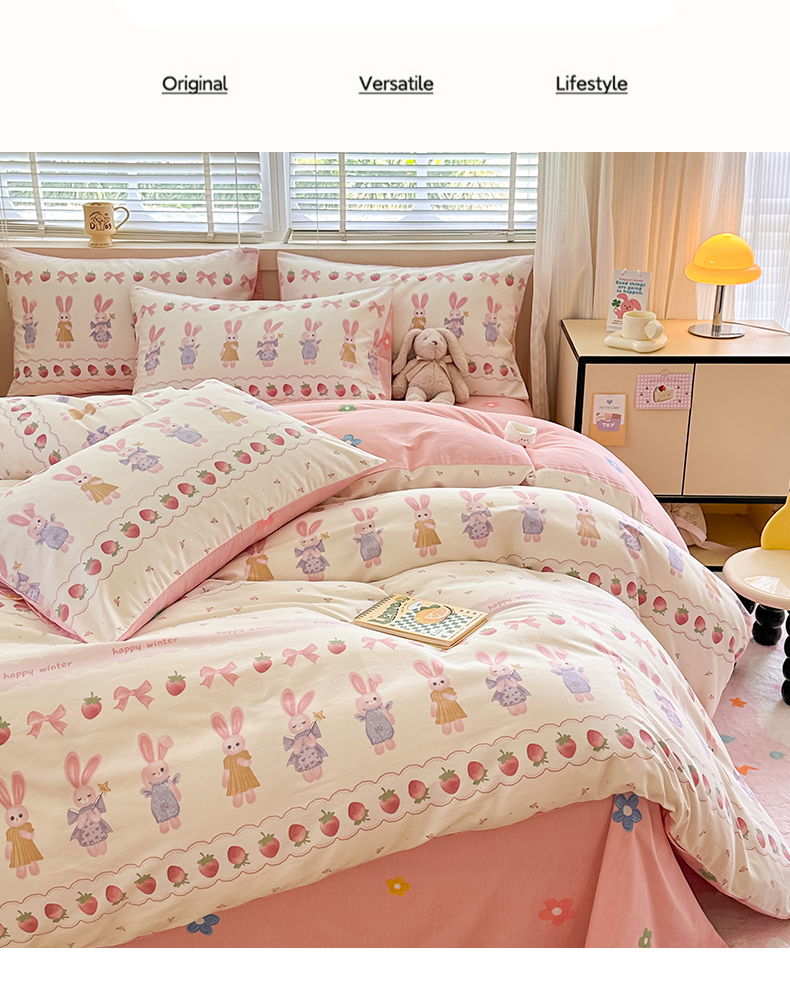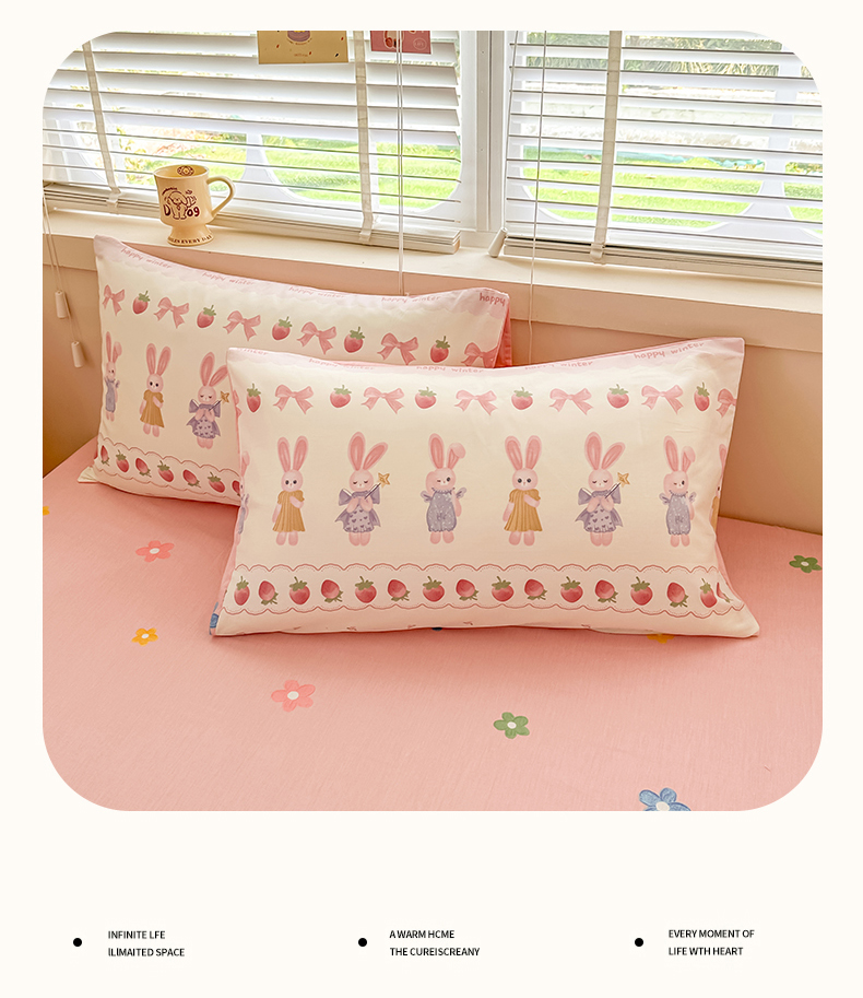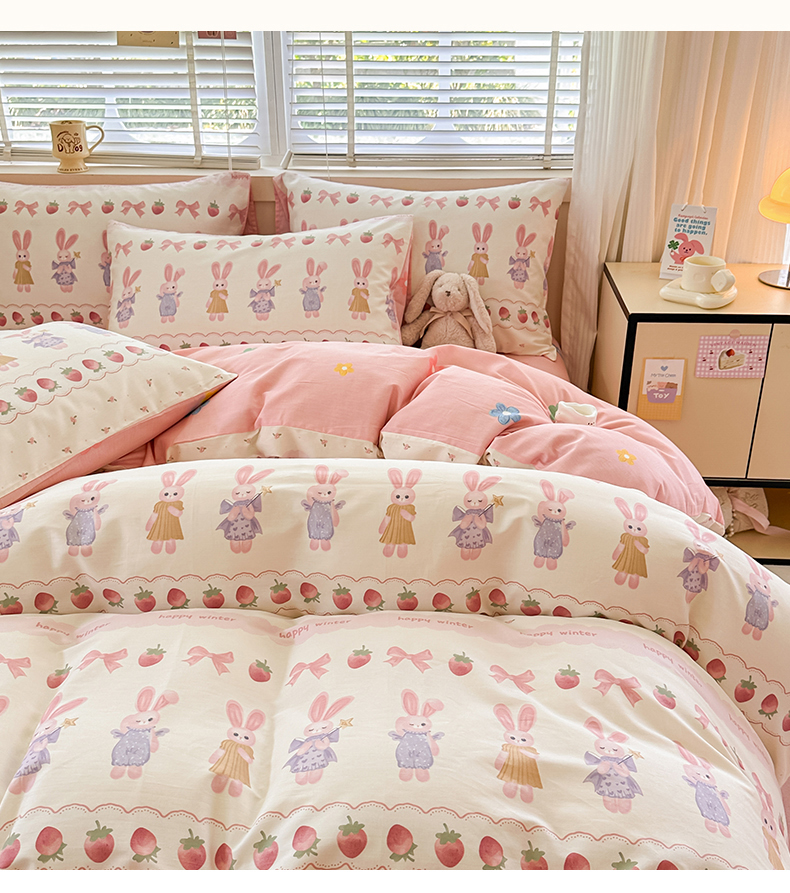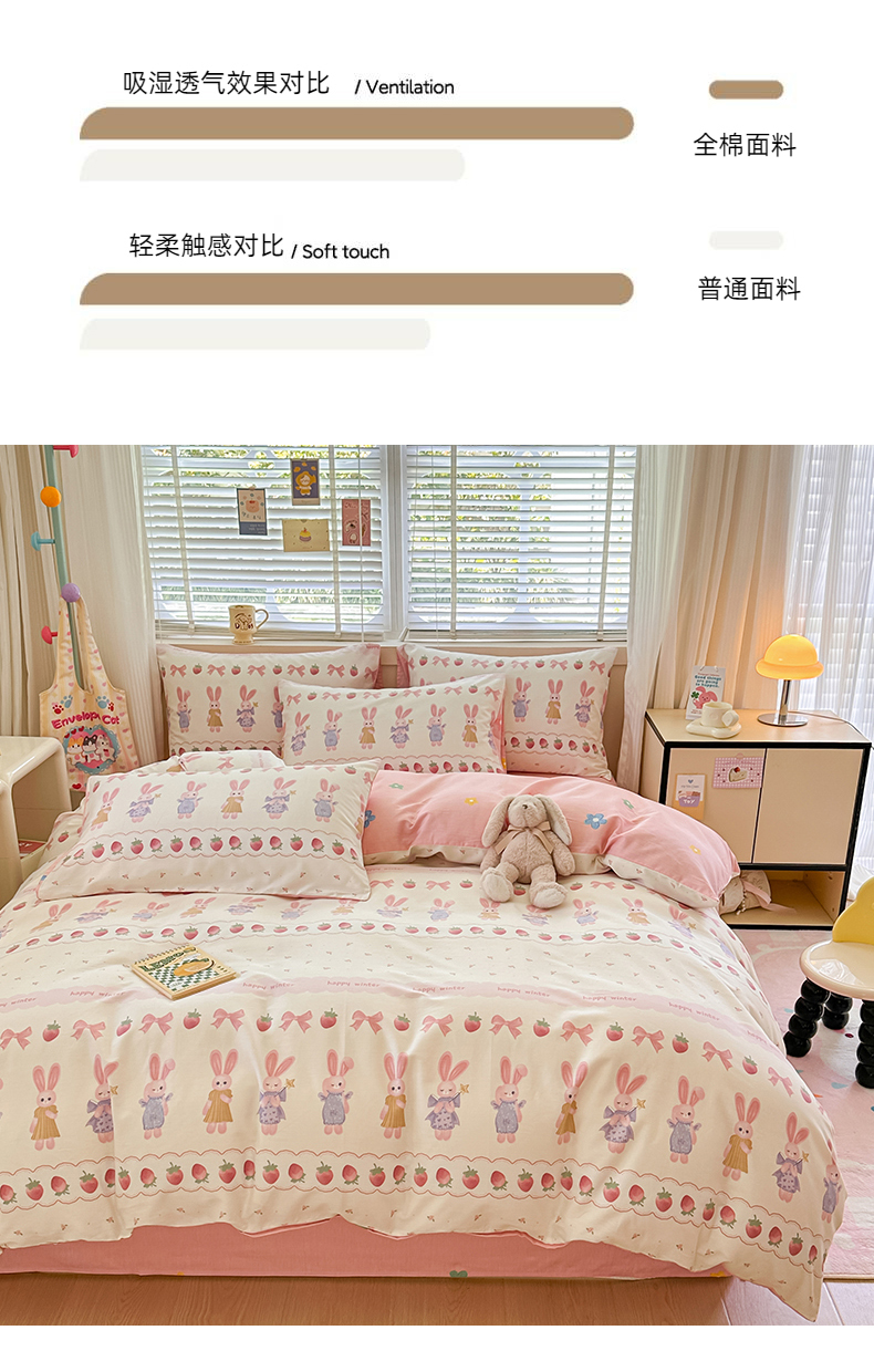 简宜家居(朝初家纺)2025新款40支全棉四件套 蝴蝶结小兔