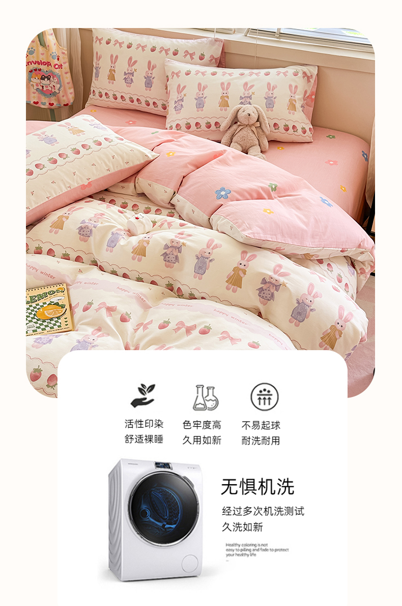简宜2023新款13070纯棉全棉40支斜纹卡通小清新学生三件套四件套,花园兔,紫葡仙子,倩影粉,hello 萌熊,嘟嘟小车,简笔画,开心小黄鸭,梦幻城堡,浓情爱意