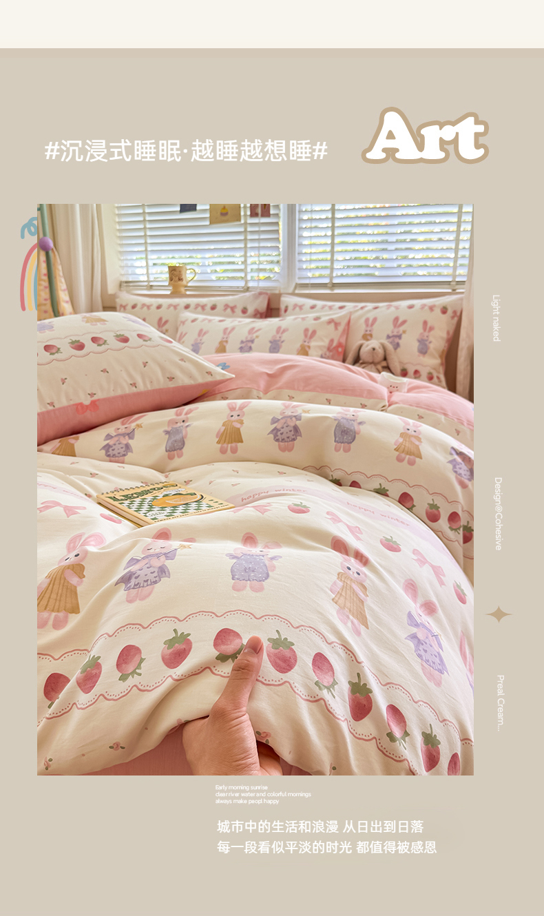 (总)简宜家居(朝初家纺) 2025新款12868全棉兔与花笺系列四件套,海星贝贝,兔与花笺,豹纹-粉,豹纹-咖,粉红可爱兔,粉色猫,粉条喵团,格纹宠物,火箭星空,蓝格欢乐,蓝花兔,萌友聚会,木马蓝格,奶蓝熊语,甜心萌犬,原野草木