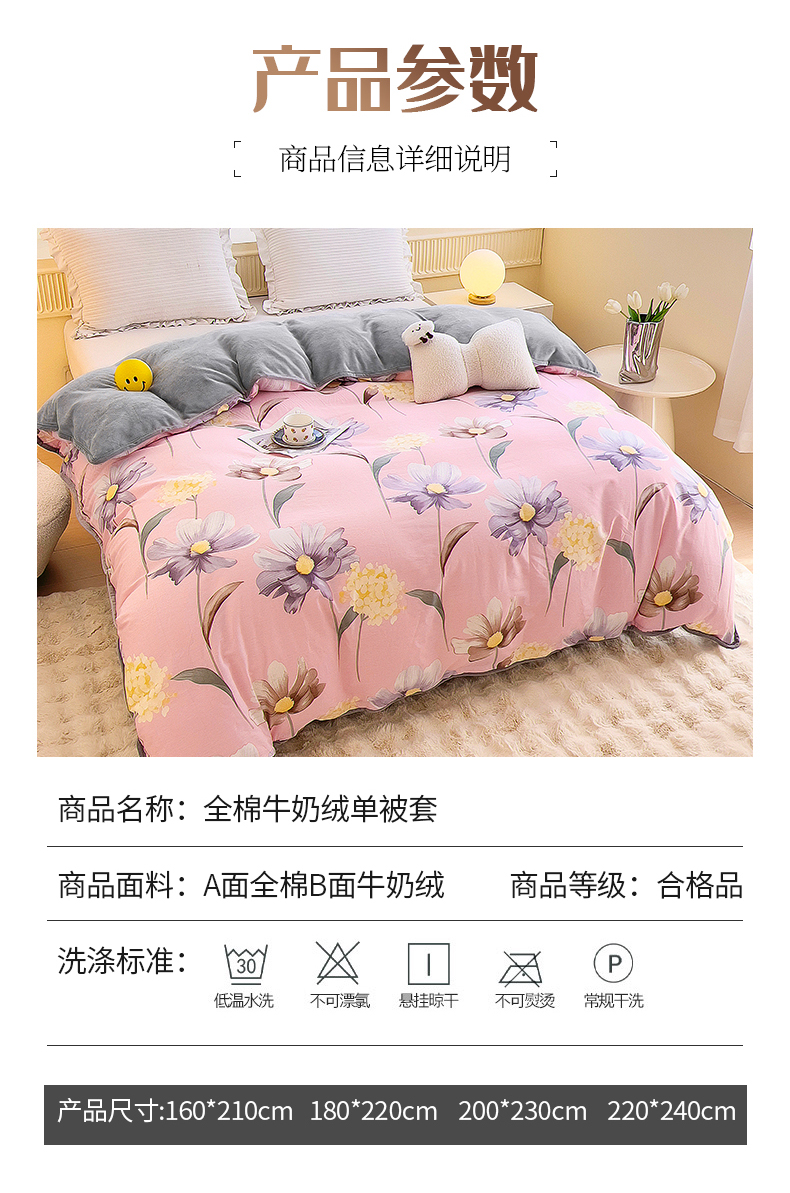 商品名称:2024新款全棉加牛奶绒四件套单被套系列-单被套 慕雅