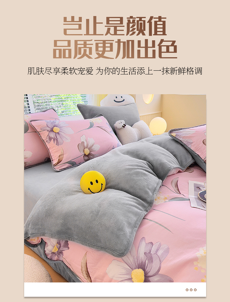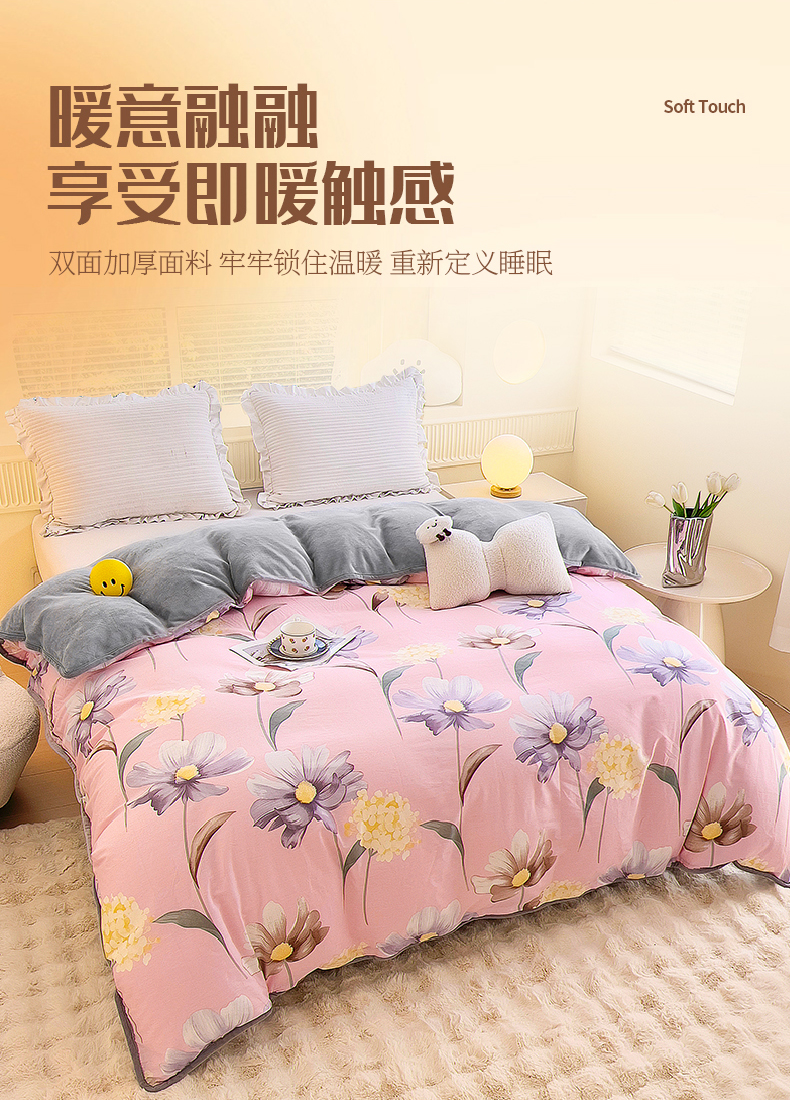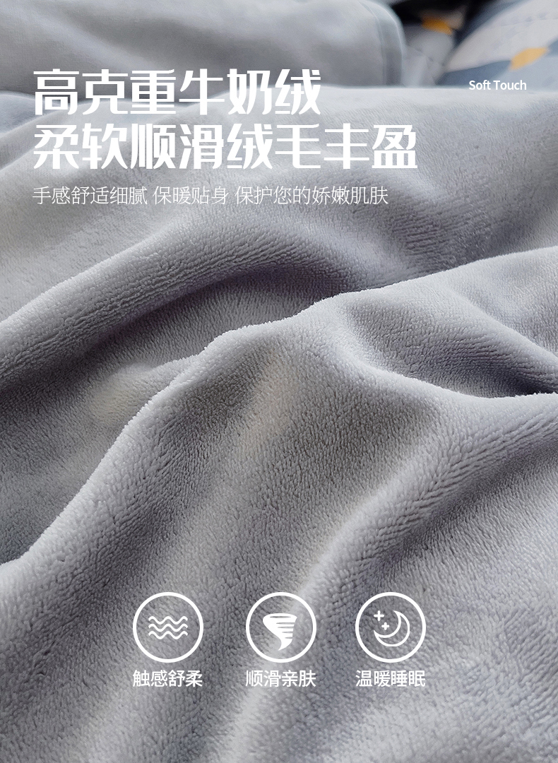 琪琪阁 2023新款A棉B绒棉加绒牛奶绒四件套单被套 宁静生活,宁静生活