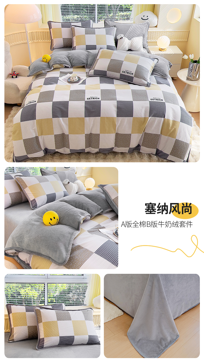 当前位置: 91家纺网 > 商品网购 > 床品套件 > 四件套 > 牛奶绒四件套 > 2024新款全棉加牛奶绒四件套单被套系列-四件套 塞纳风尚