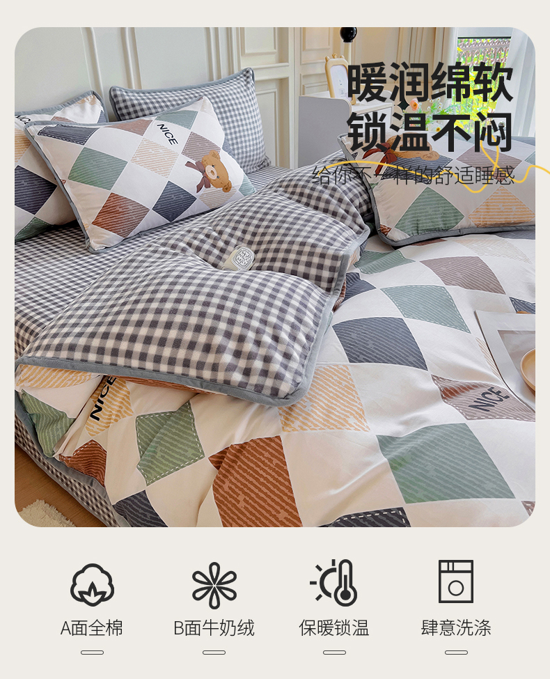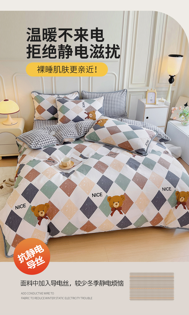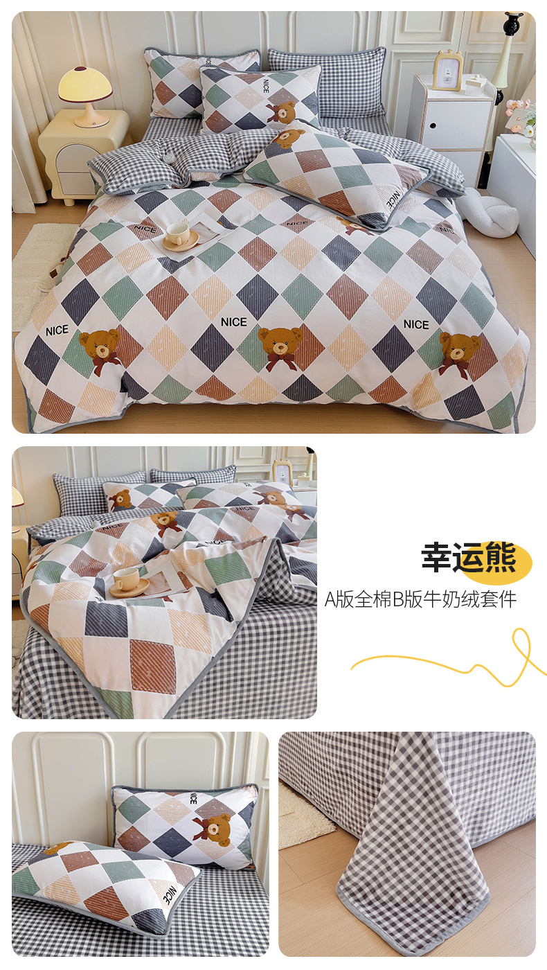 当前位置: 91家纺网 > 商品网购 > 床品套件 > 四件套 > 牛奶绒四件套 > 2024新款全棉加牛奶绒四件套单被套系列-四件套 幸运熊