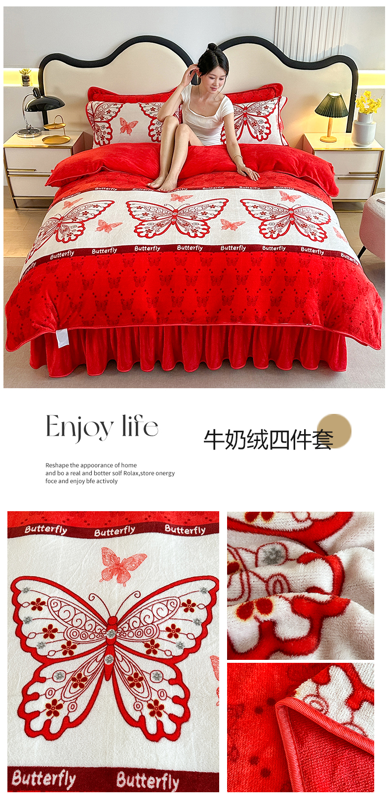 商品名称:爱洛 2024新款日产过万爆款印花牛奶绒四件套 蝴蝶物语