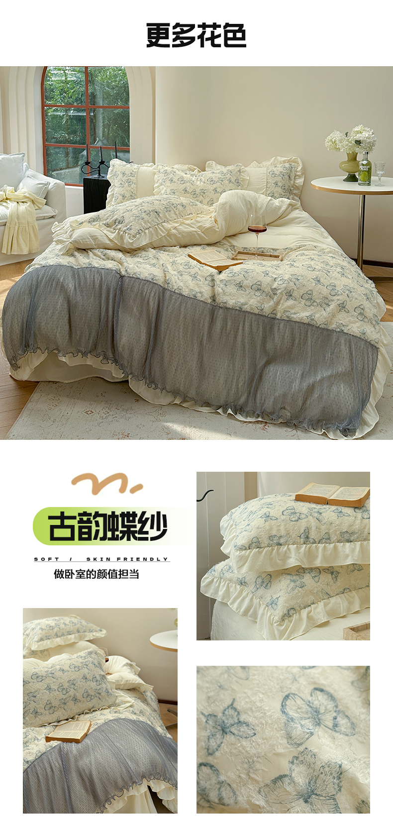 商品名称:轻奢坊 2024新款水洗棉剪花四件套-风格二 古韵蝶纱