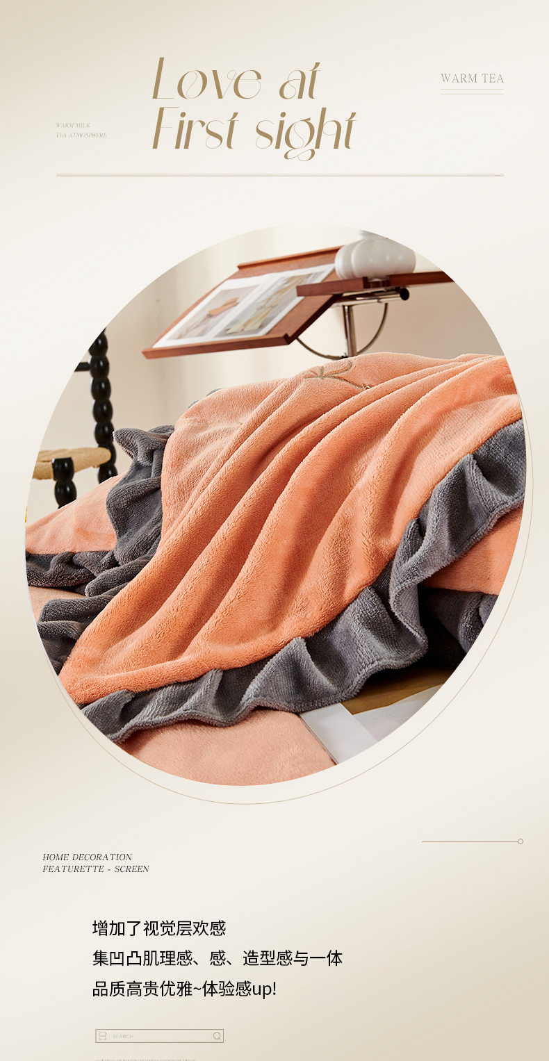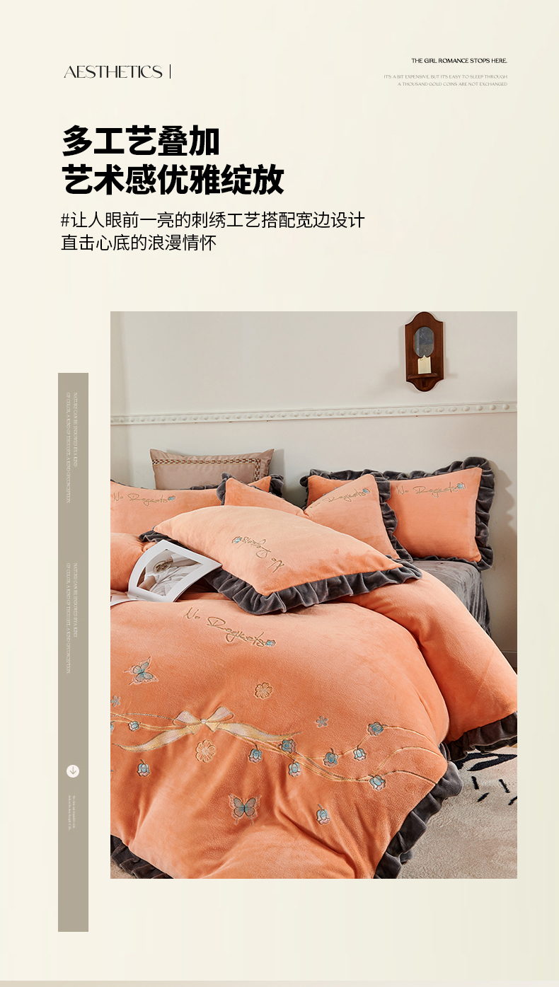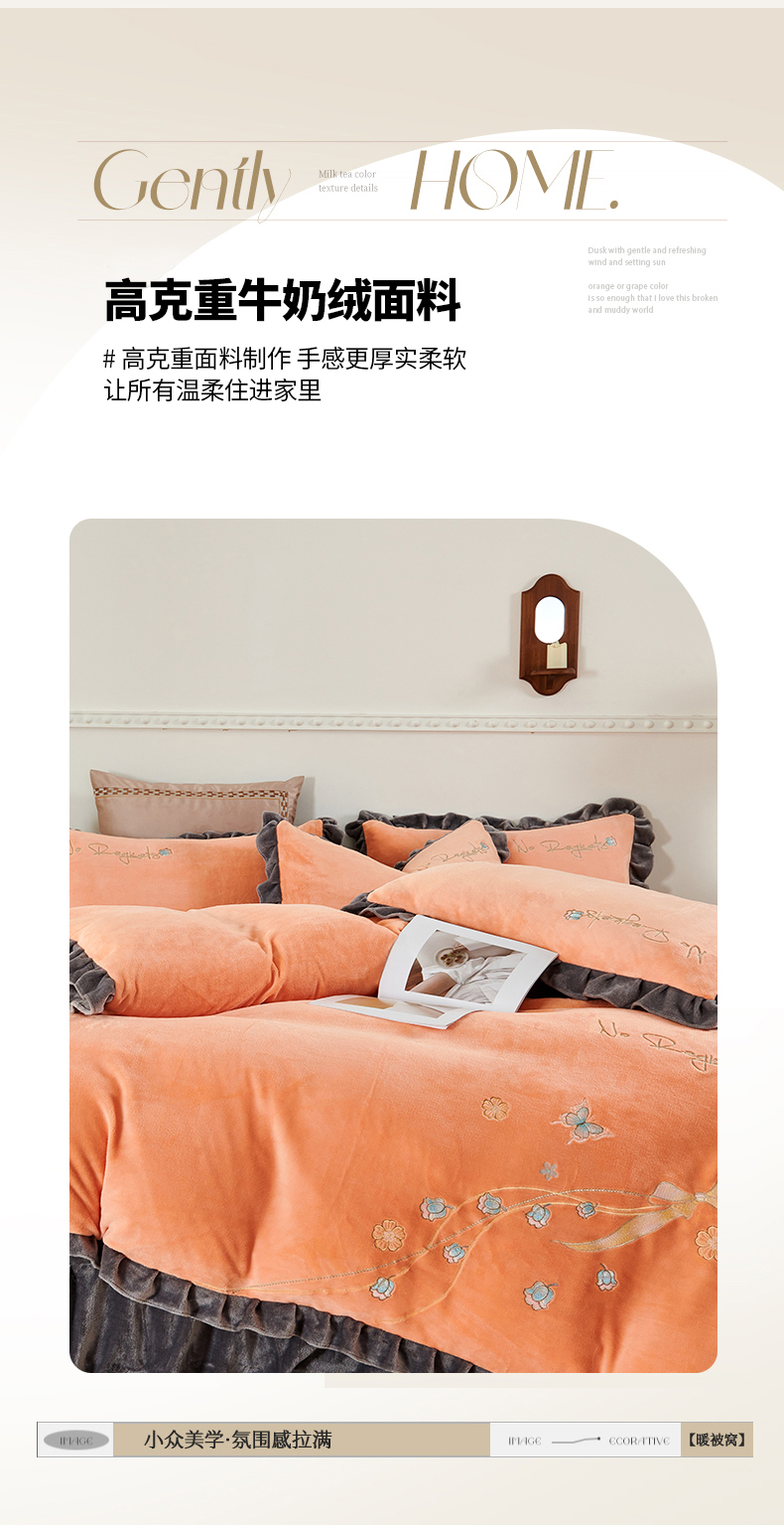 慕克斯 2025直播新款高克重8.5斤纯色刺绣牛奶绒四件套 朝花夕拾-浅橘,朝花夕拾-浅橘