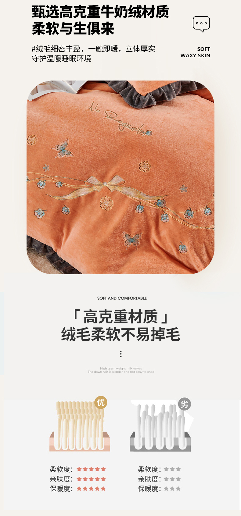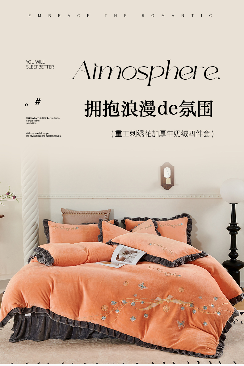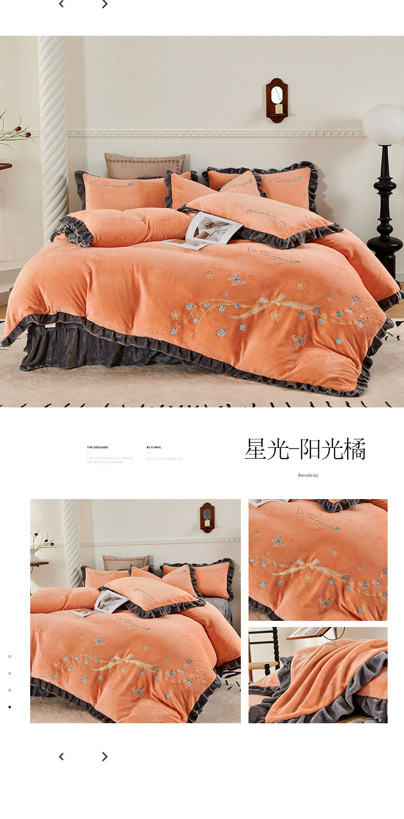 商品名称:慕克斯 2024新款重工绣花牛奶绒四件套星光 星光-阳光橘