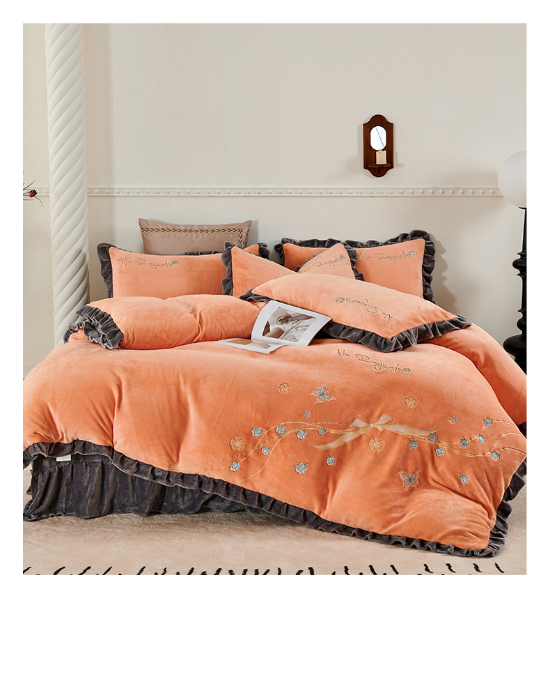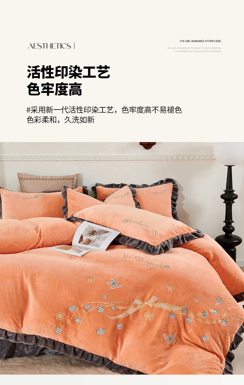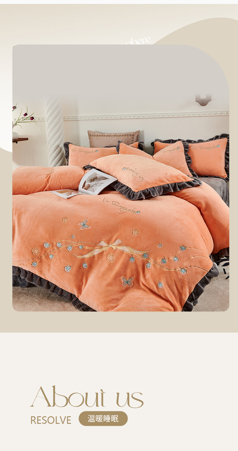 商品名称:慕克斯 2024新款重工绣花牛奶绒四件套星光 星光-阳光橘