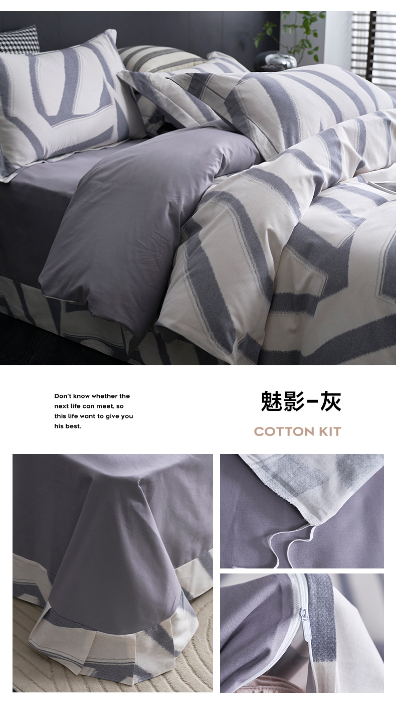 当前位置: 91家纺网 > 商品网购 > 床品套件 > 四件套 > 全棉普通四件套 > XIWEN-希文家纺 2024新款全棉印花陶瓷磨毛四件套-第二批 魅影-灰