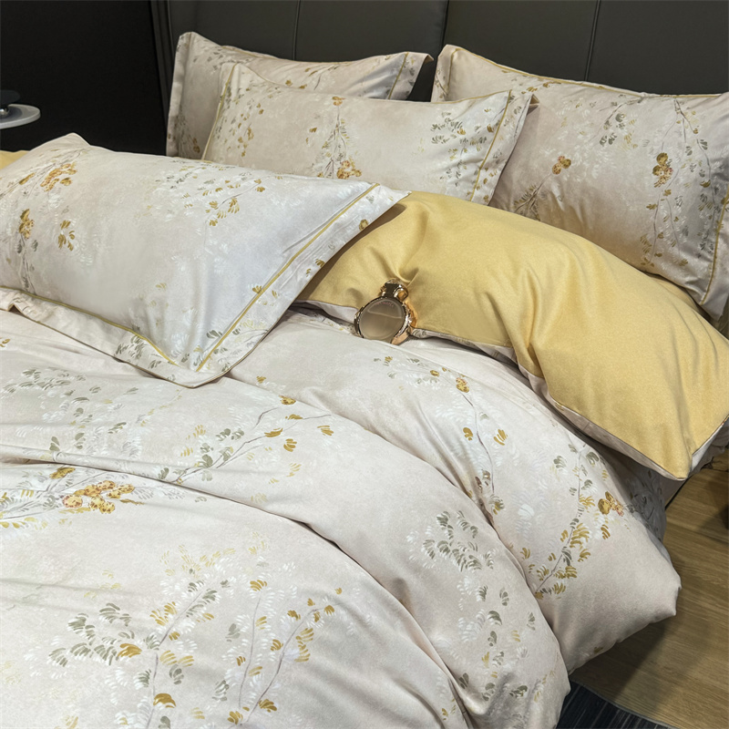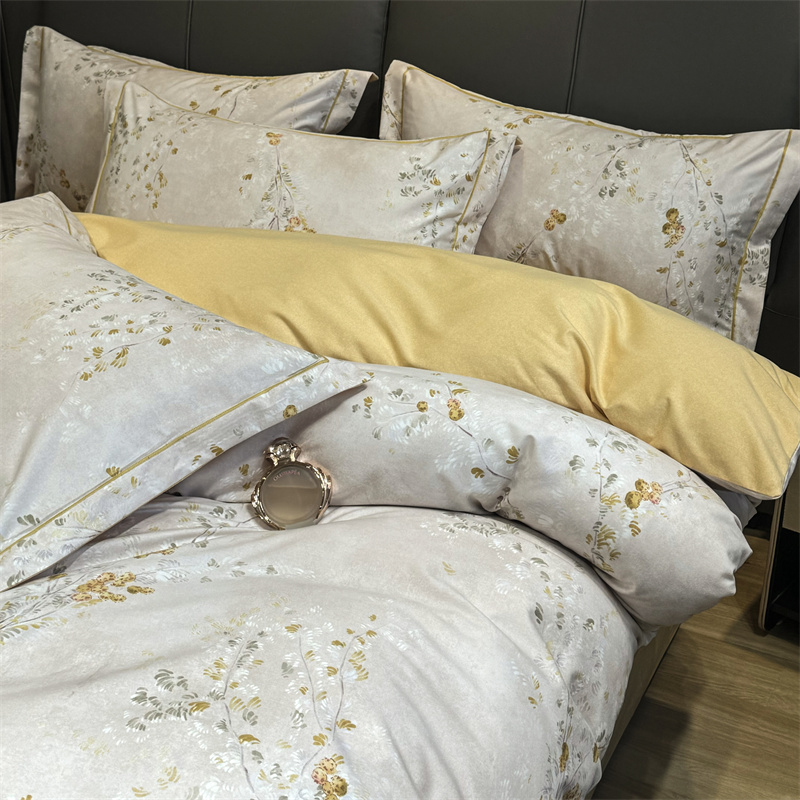 (总)嘉汀兰家居 2025新款长绒棉磨毛四件套—蔓莎,豆沙,灰色,桔色,绿色,香槟,紫色