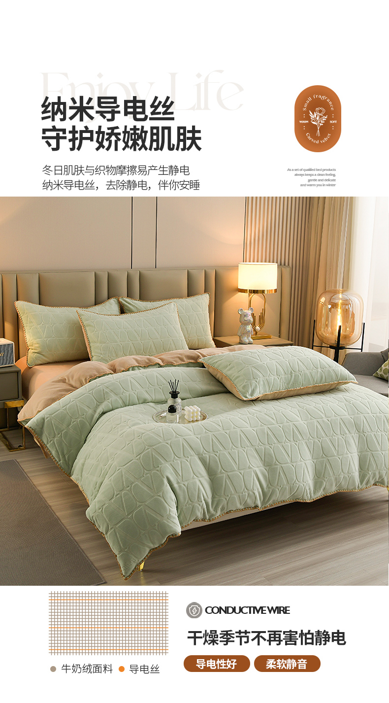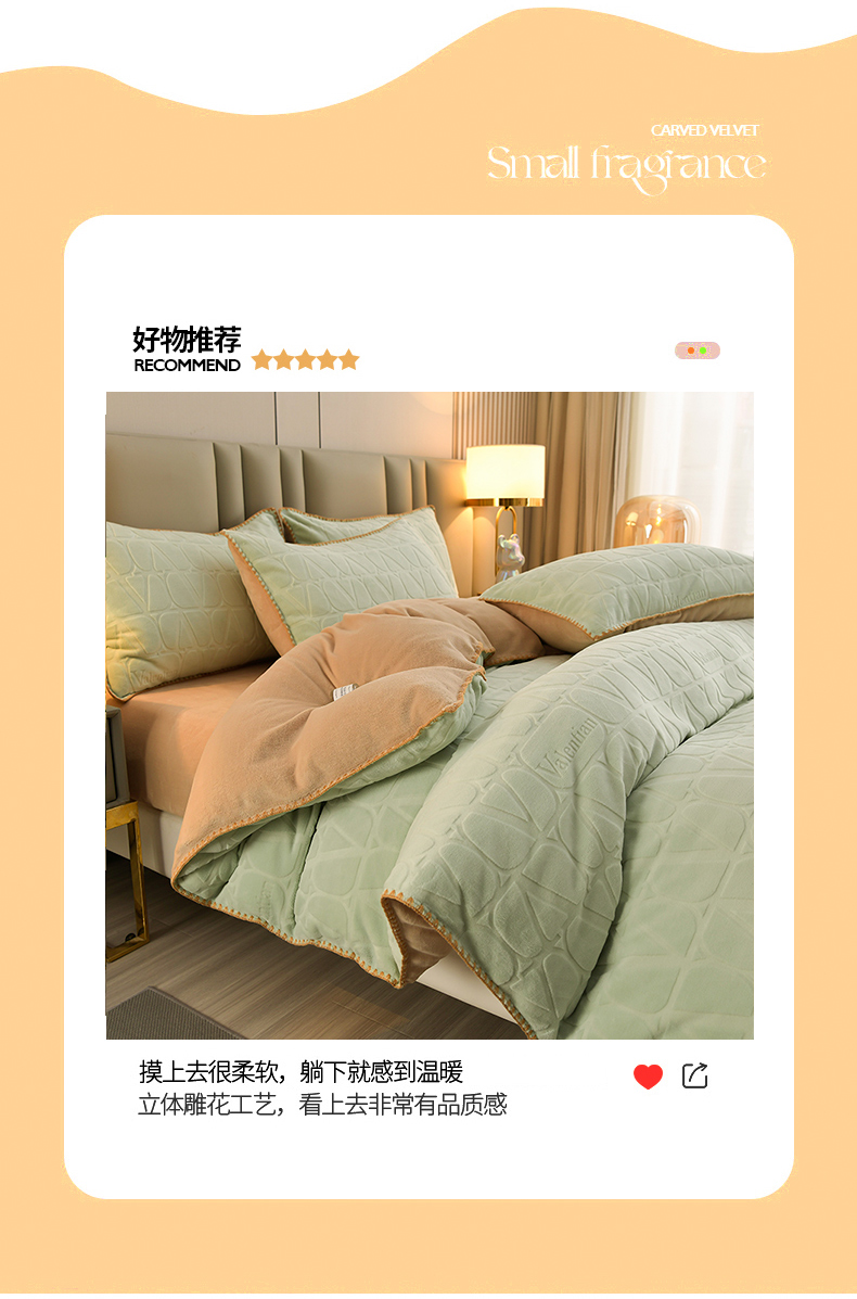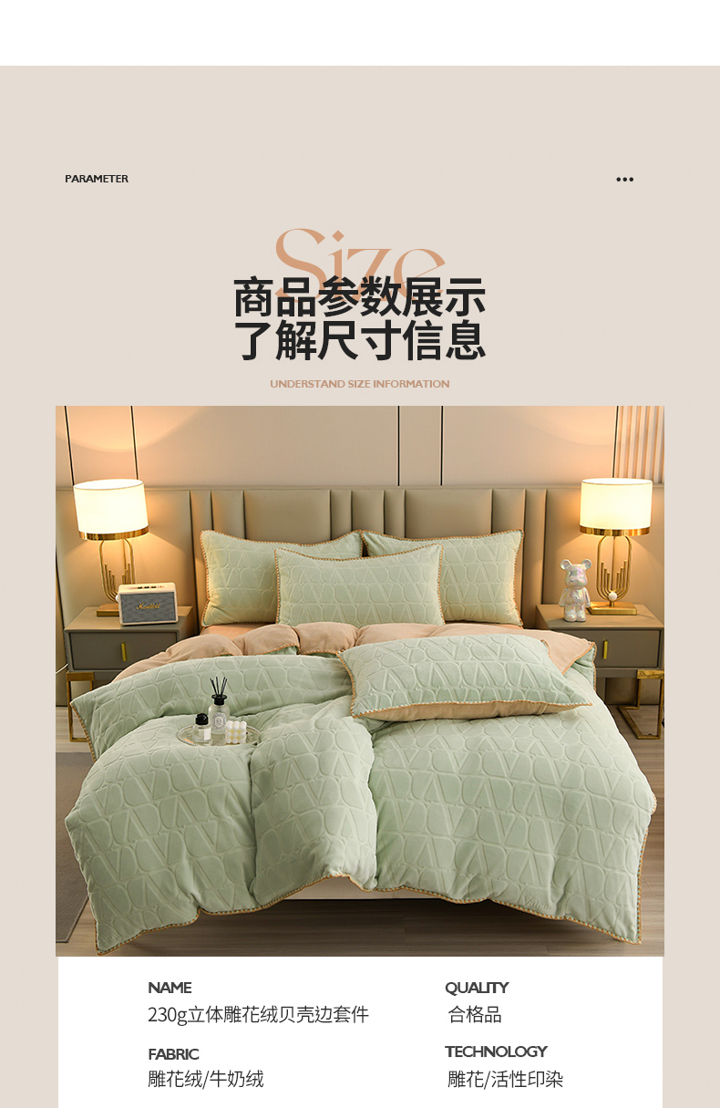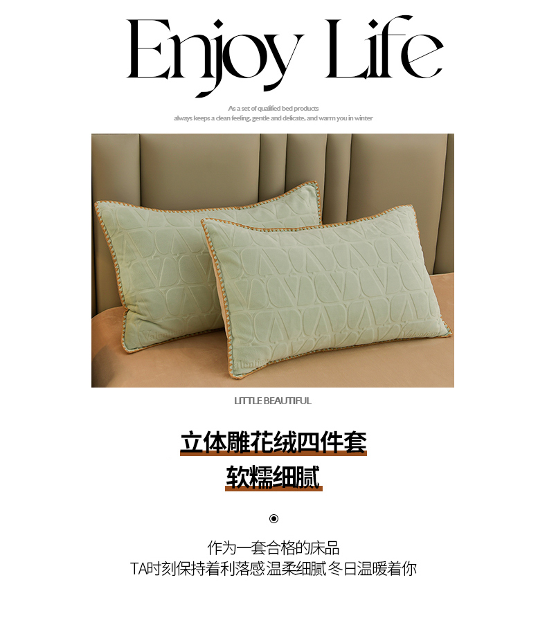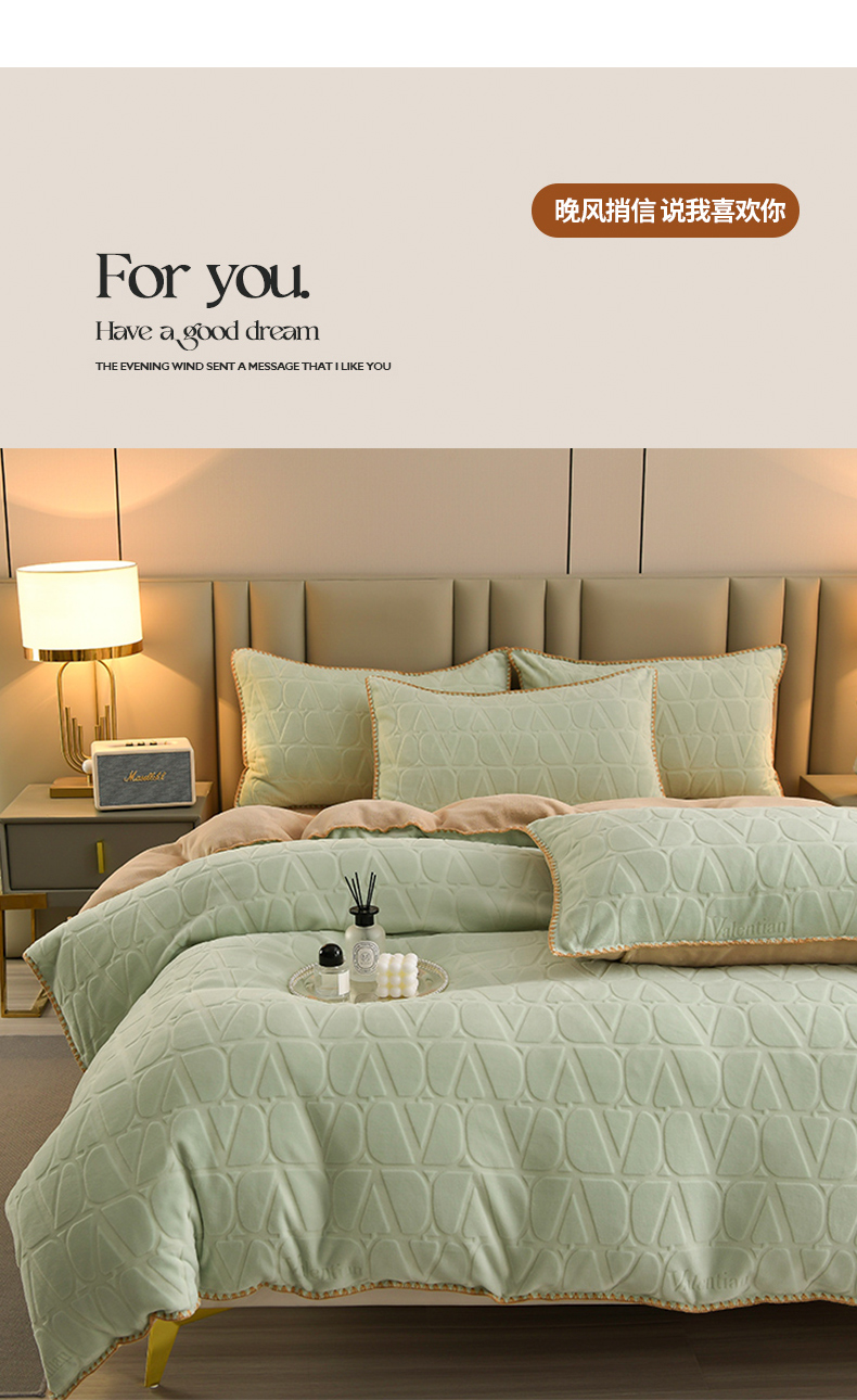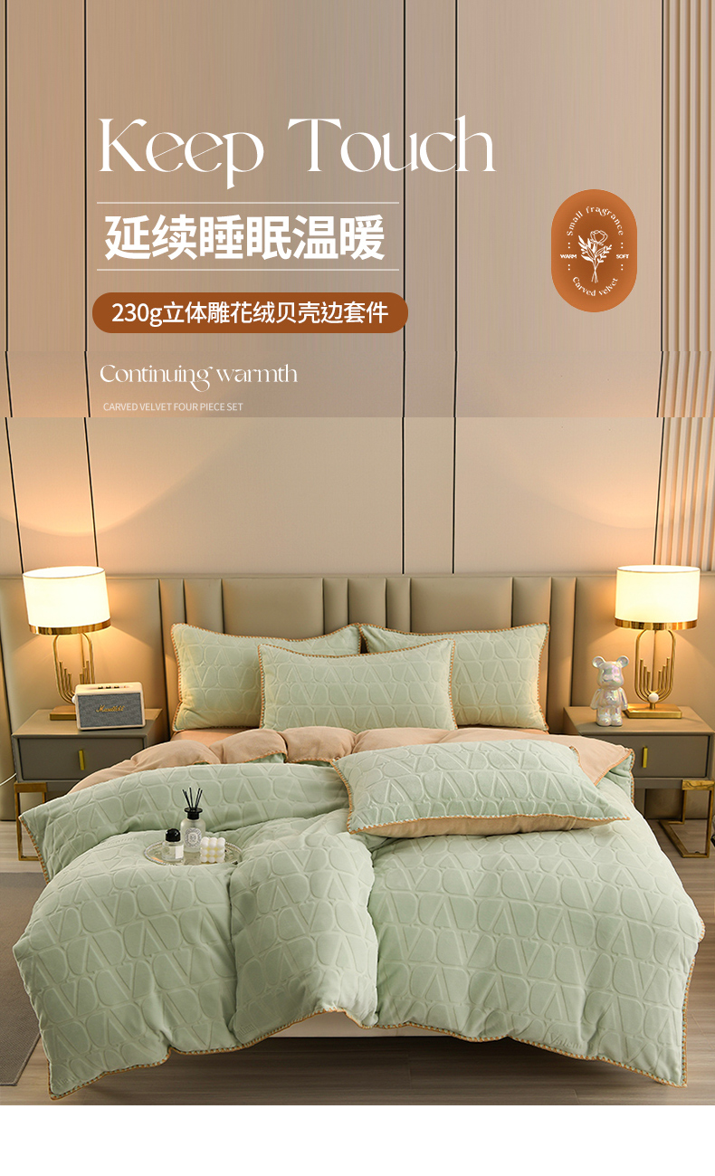 当前位置: 91家纺网 > 商品网购 > 床品套件 > 四件套 > 雕花绒四件套 > 菡宝 2024新款贝壳边雕花绒四件套 华威-浅鹅绿