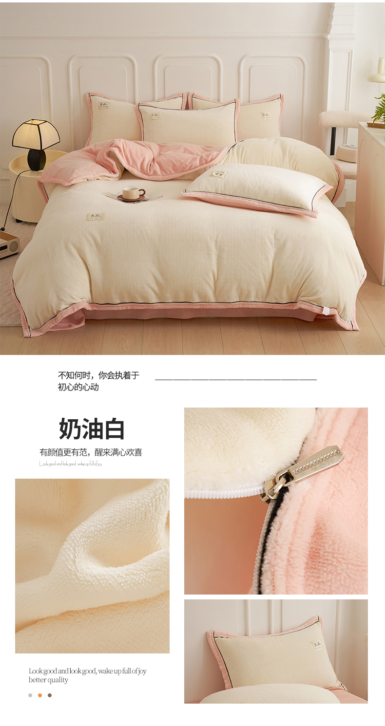 当前位置: 91家纺网 > 商品网购 > 床品套件 > 四件套 > 牛奶绒四件套 > 贝诗梦 2025新款高克重纯色牛奶绒宽边工艺款四件套 双拼牛奶绒-奶白+蔷薇粉