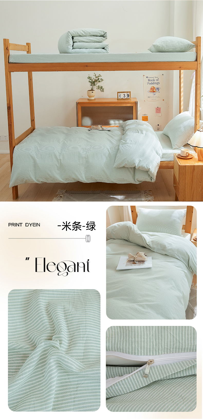 商品名称:棉小二 2024新款全棉水洗棉学生宿舍三四件套 米条-绿