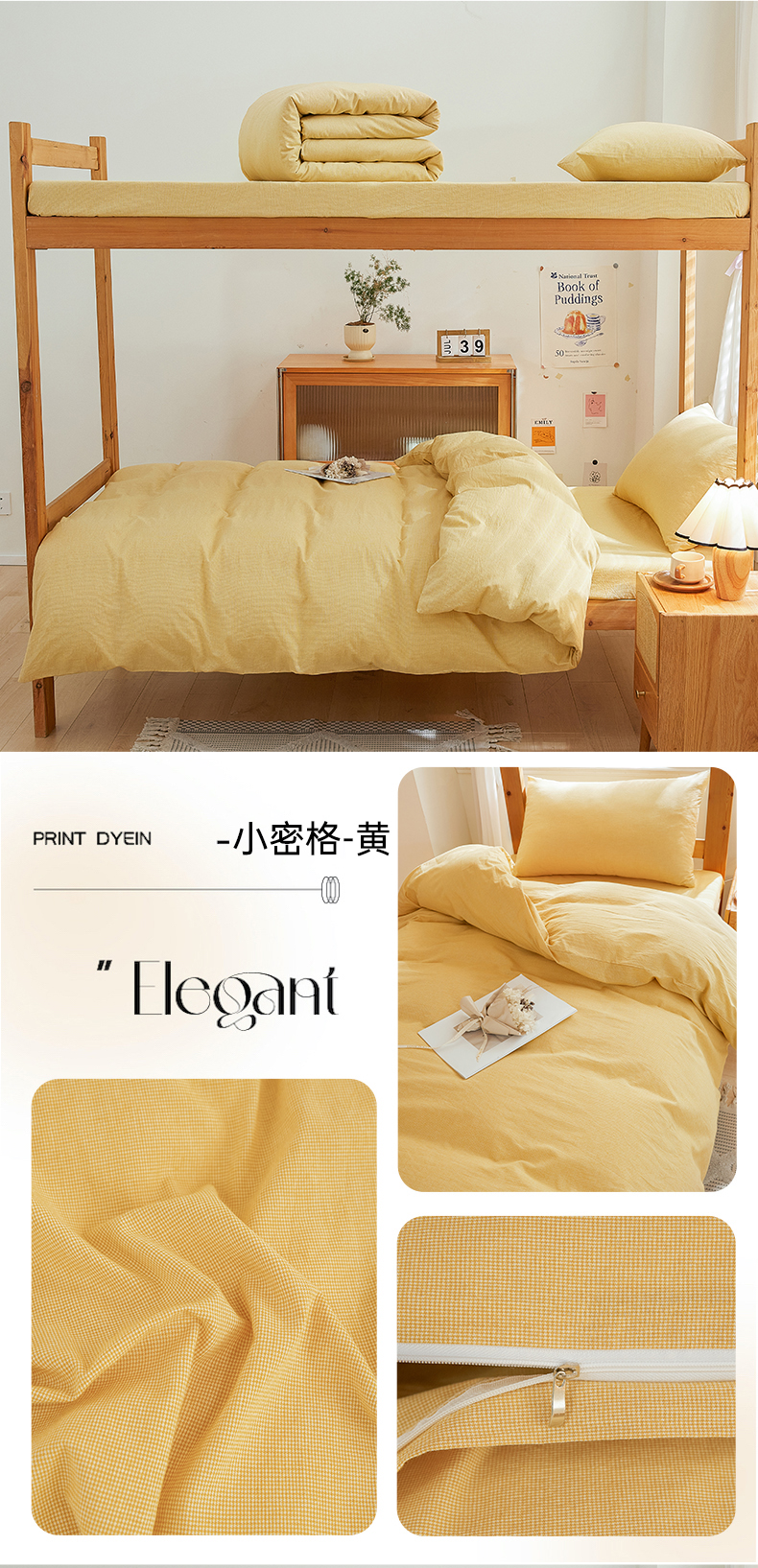 商品名称:棉小二 2024新款全棉水洗棉学生宿舍三四件套 小密格-黄
