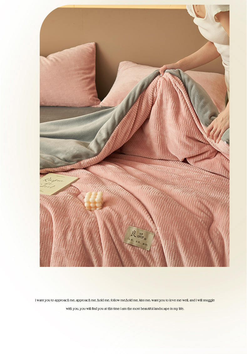 2024新款牛奶绒提花围棋格冬被四件套 格子-粉拼灰