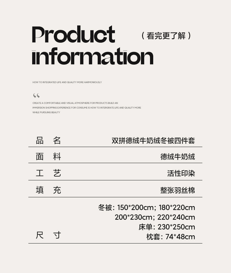 • 91家纺网 家纺一手货源 找家纺 2024新款双面牛奶绒德绒拼色冬被四件套 德绒拼色-浅驼