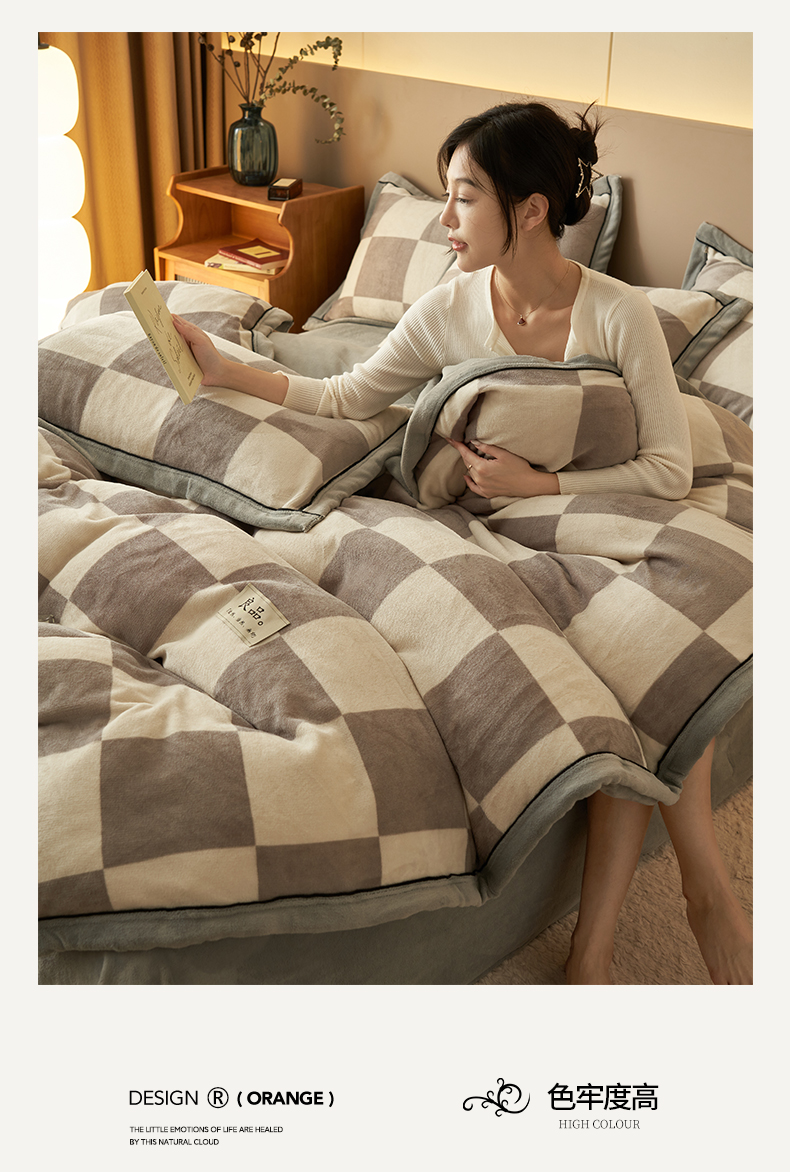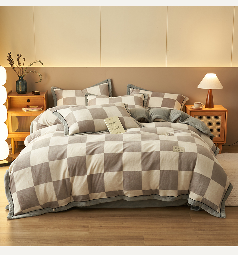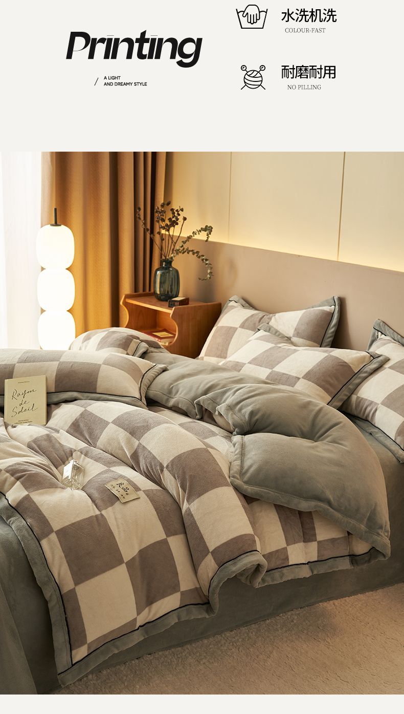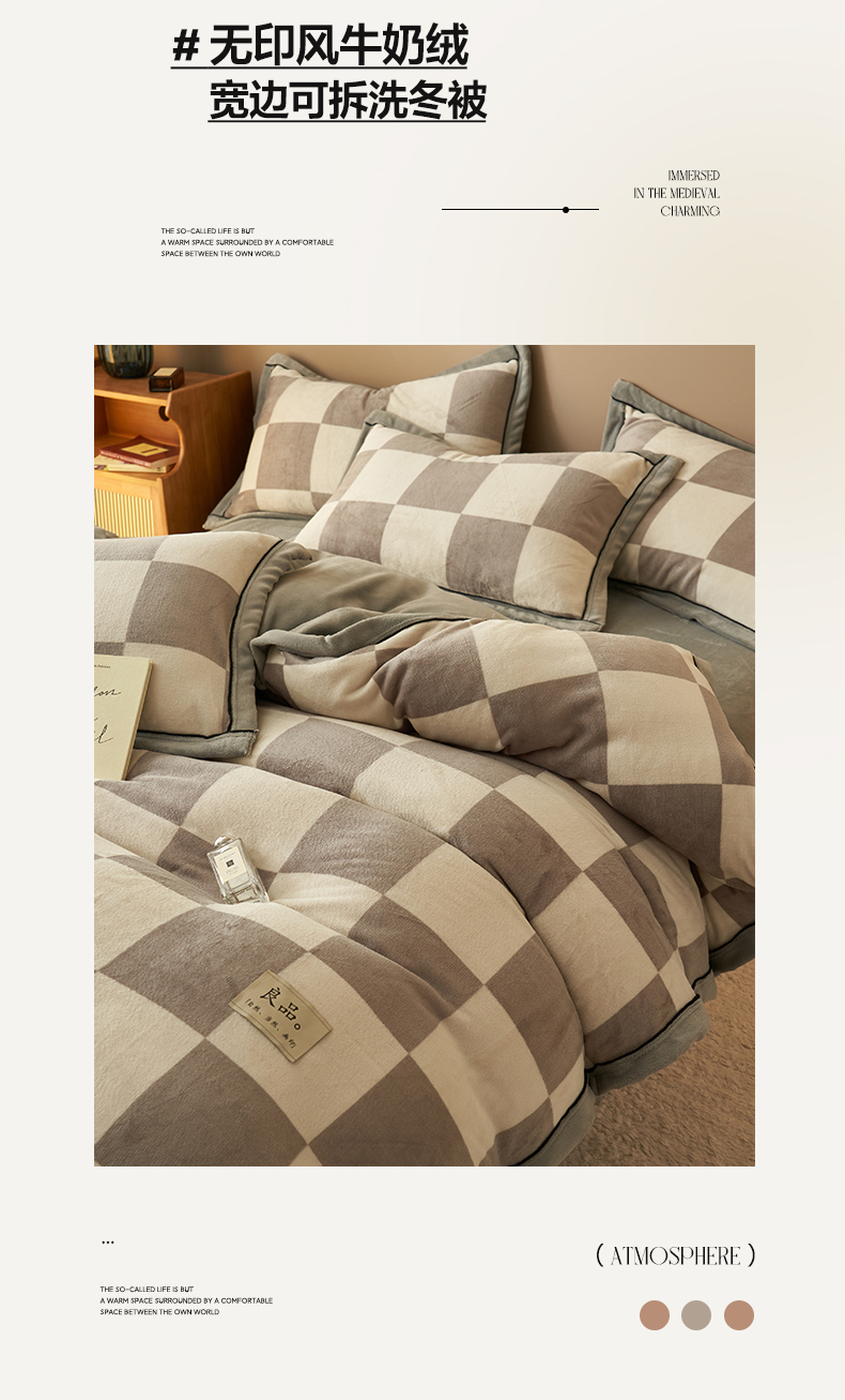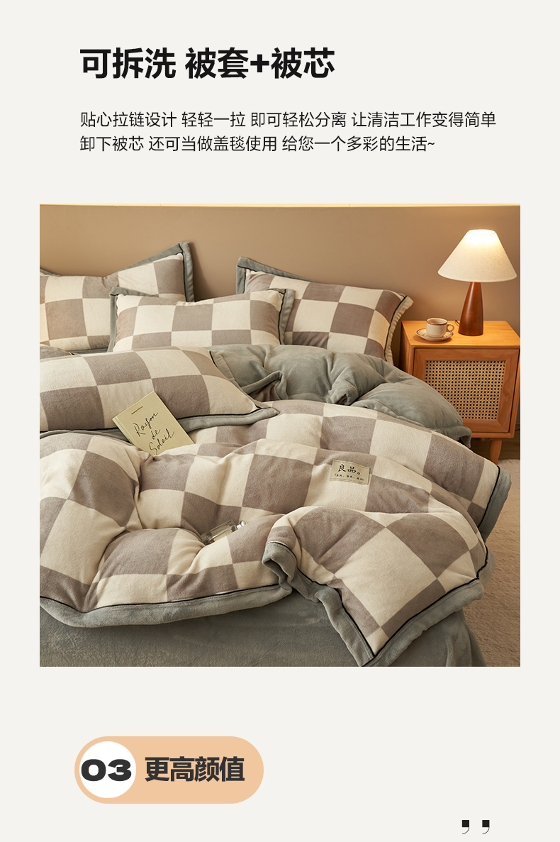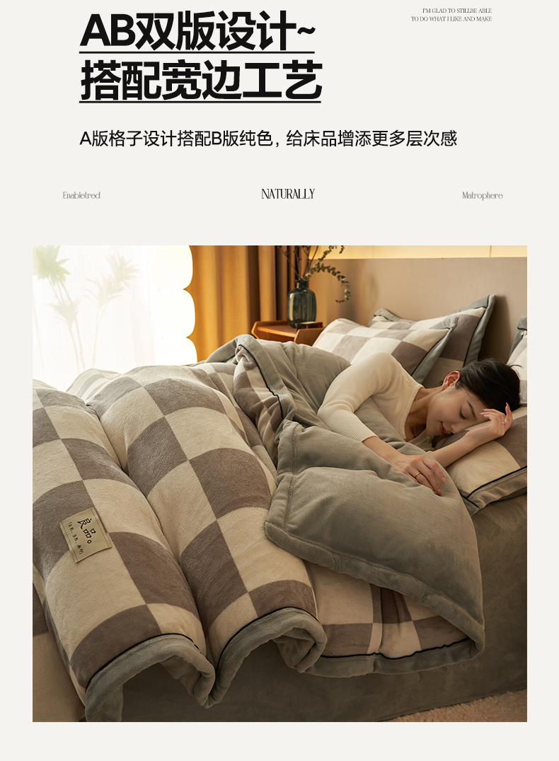 • 91家纺网 家纺一手货源 找家纺 2024新款无印风牛奶绒宽边可拆洗冬被被子被芯 无印风可拆洗冬被-灰白格