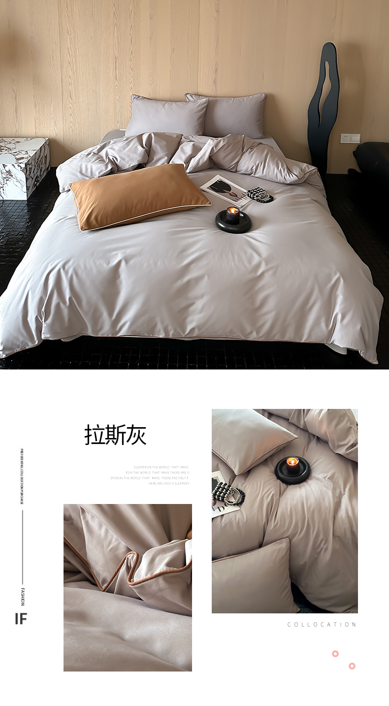 三味舒屋 2024秋冬美拉德色系50s全棉磨毛四件套-棚拍详情图 雪梨
