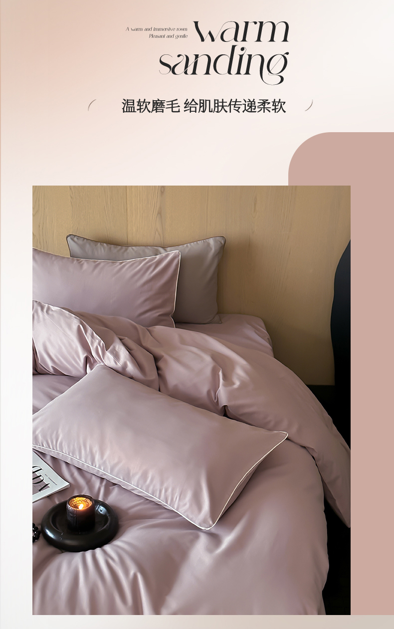 商品名称:三味舒屋 2024秋冬美拉德色系50s全棉磨毛四件套-棚拍详情图 雪梨