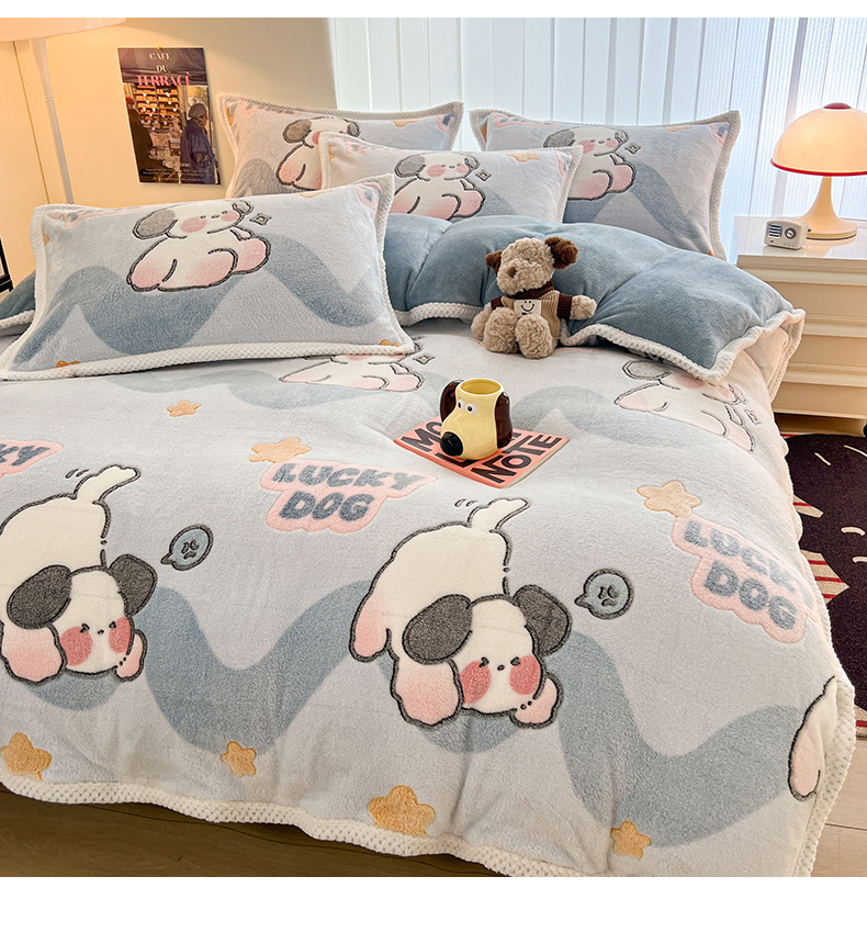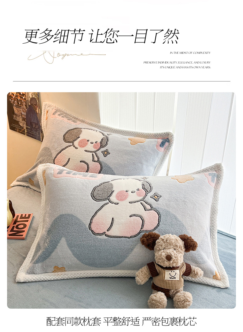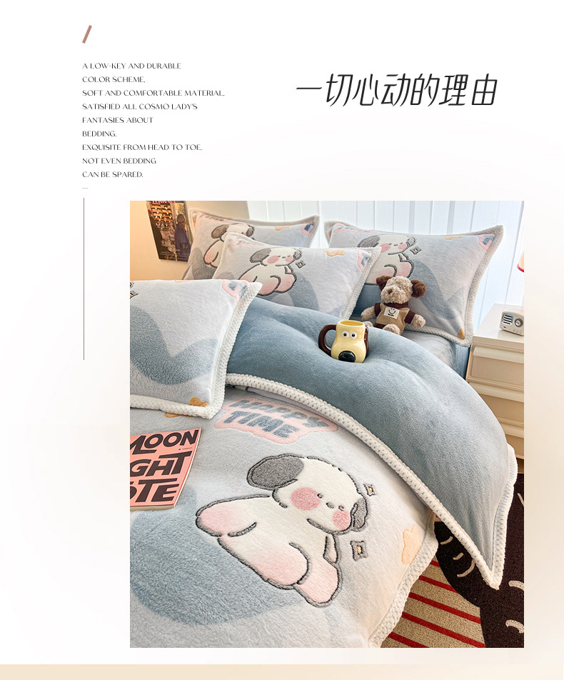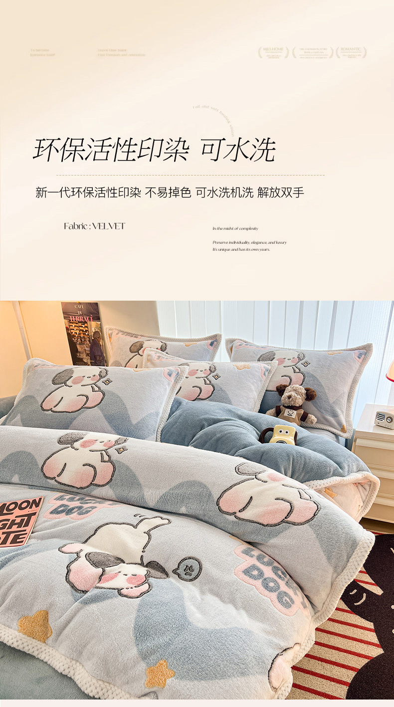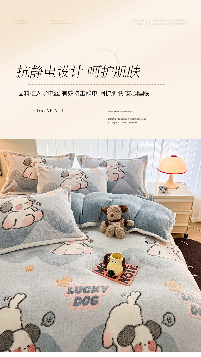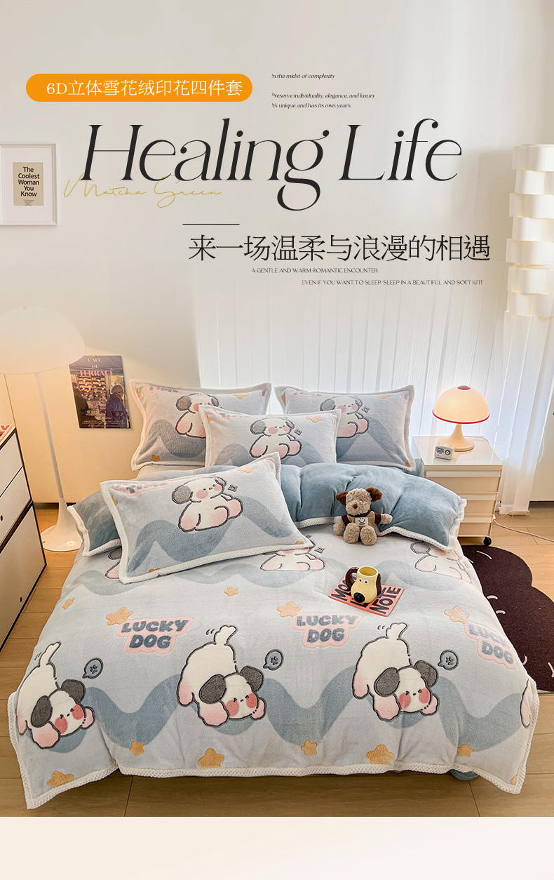 当前位置: 91家纺网 > 商品网购 > 床品套件 > 四件套 > 其它四件套 > 倾慕家纺 2024新款加厚保暖6D立体雪花绒系列-四件套 时光小狗