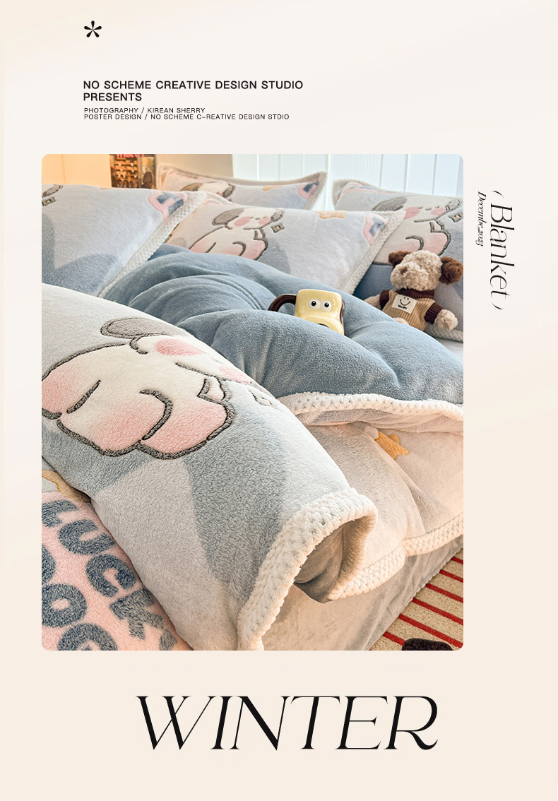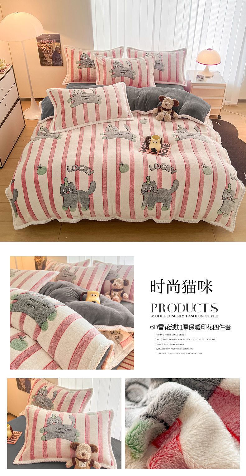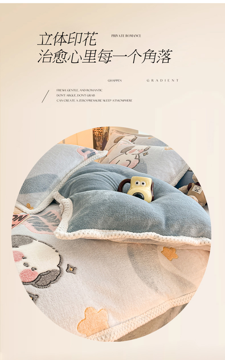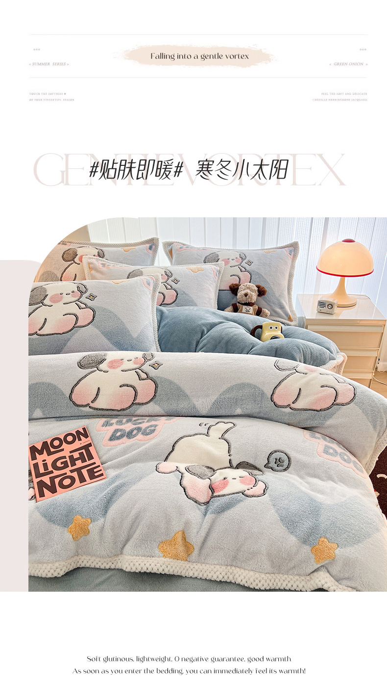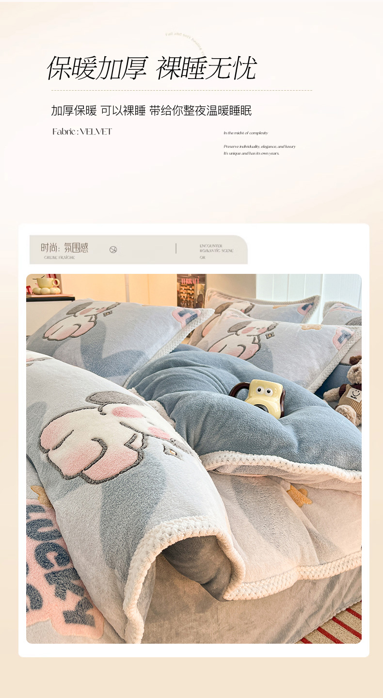 当前位置: 91家纺网 > 商品网购 > 床品套件 > 四件套 > 其它四件套 > 倾慕家纺 2024新款加厚保暖6D立体雪花绒系列-四件套 时光小狗