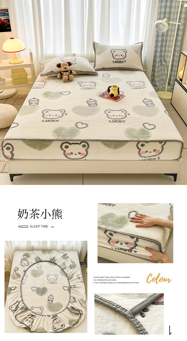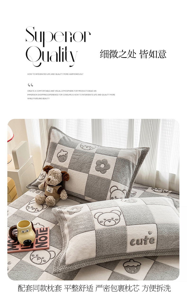 (总)倾慕家纺 2025新款卡通毛巾绣加厚保暖牛奶绒四件套,爱心女孩,咖啡小狗,猫咪熊兔,迷你小车,圣诞树熊,音乐企鹅