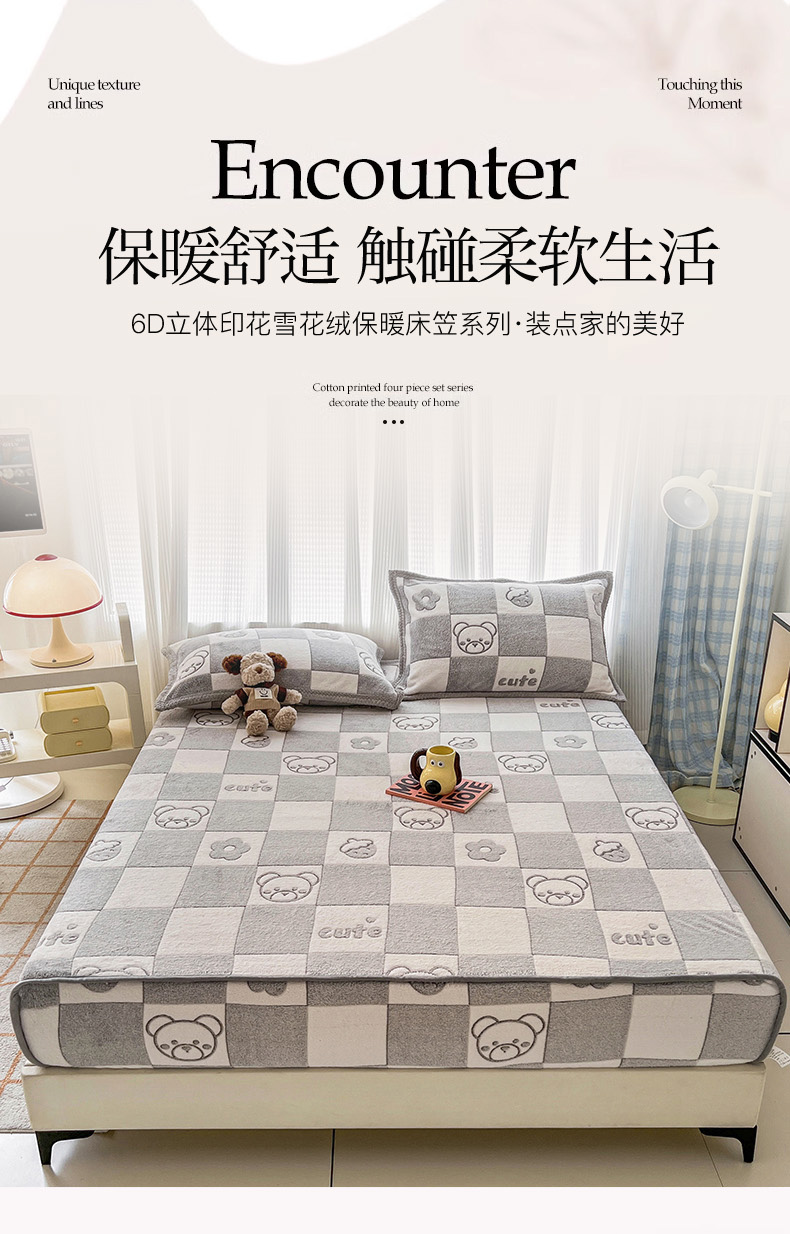 商品名称:(总)倾慕家纺 2024新款加厚保暖6D立体雪花绒系列-单床笠